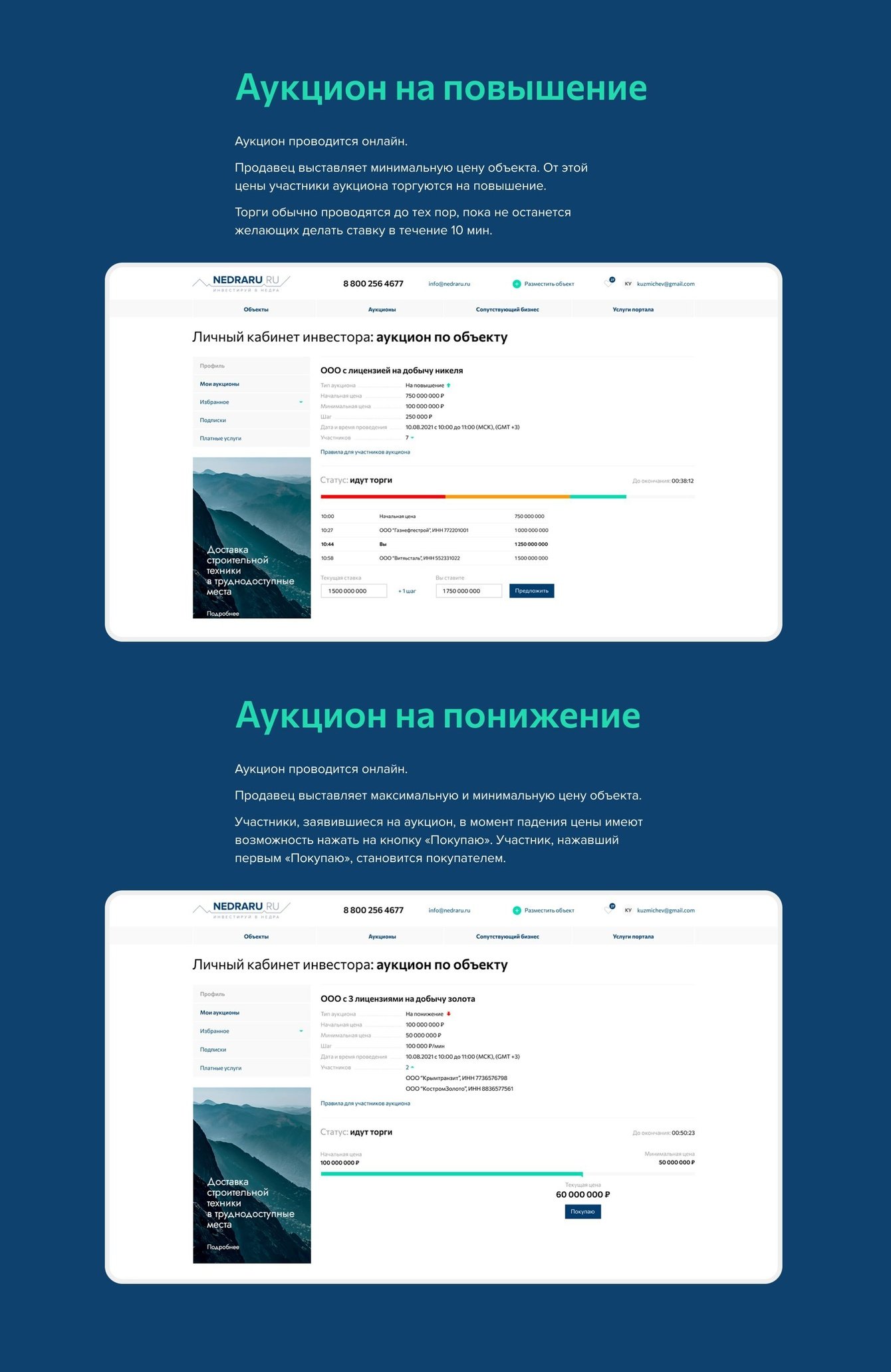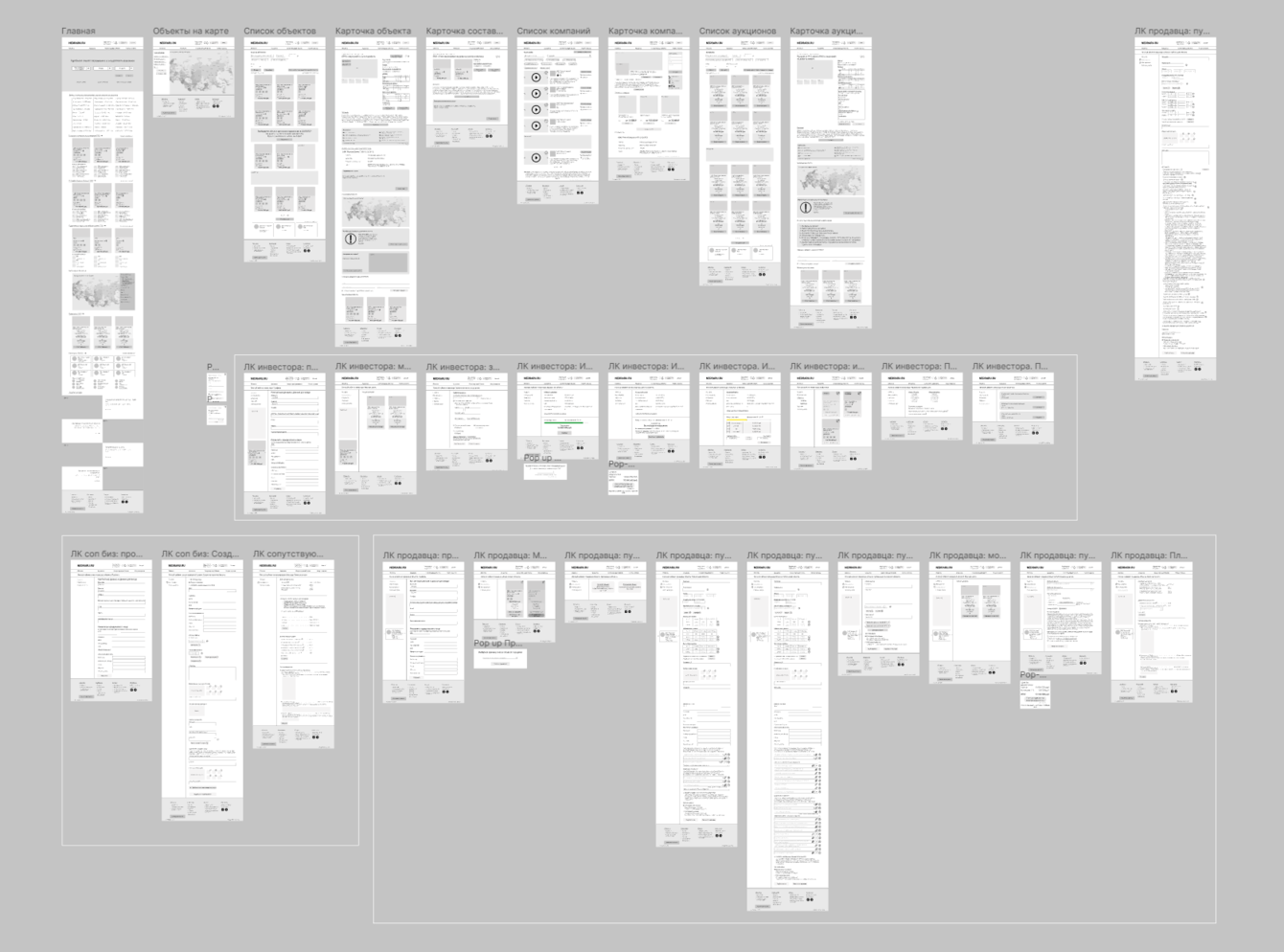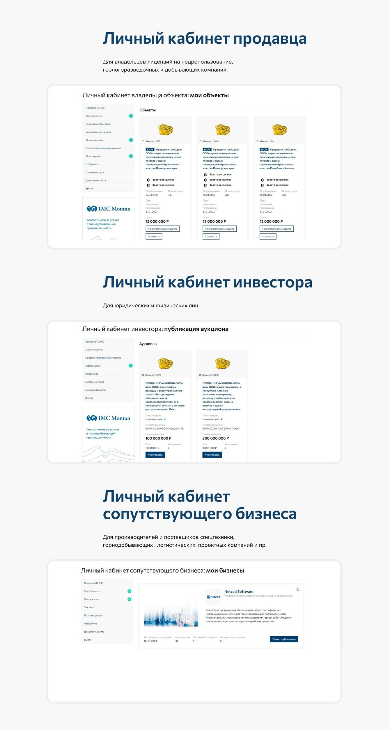 На старте работы над проектом у нас не было примеров референсов, поэтому мы ориентировались на различные ниши с функционалом проведения аукционов и размещения объявлений. Параллельно мы изучали проекты по продаже готовых бизнесов, узкоотраслевые проекты (например, работающие только с золотом) и связанные с инвестициями. Мы ориентировались на те примеры, к которым люди привыкли.