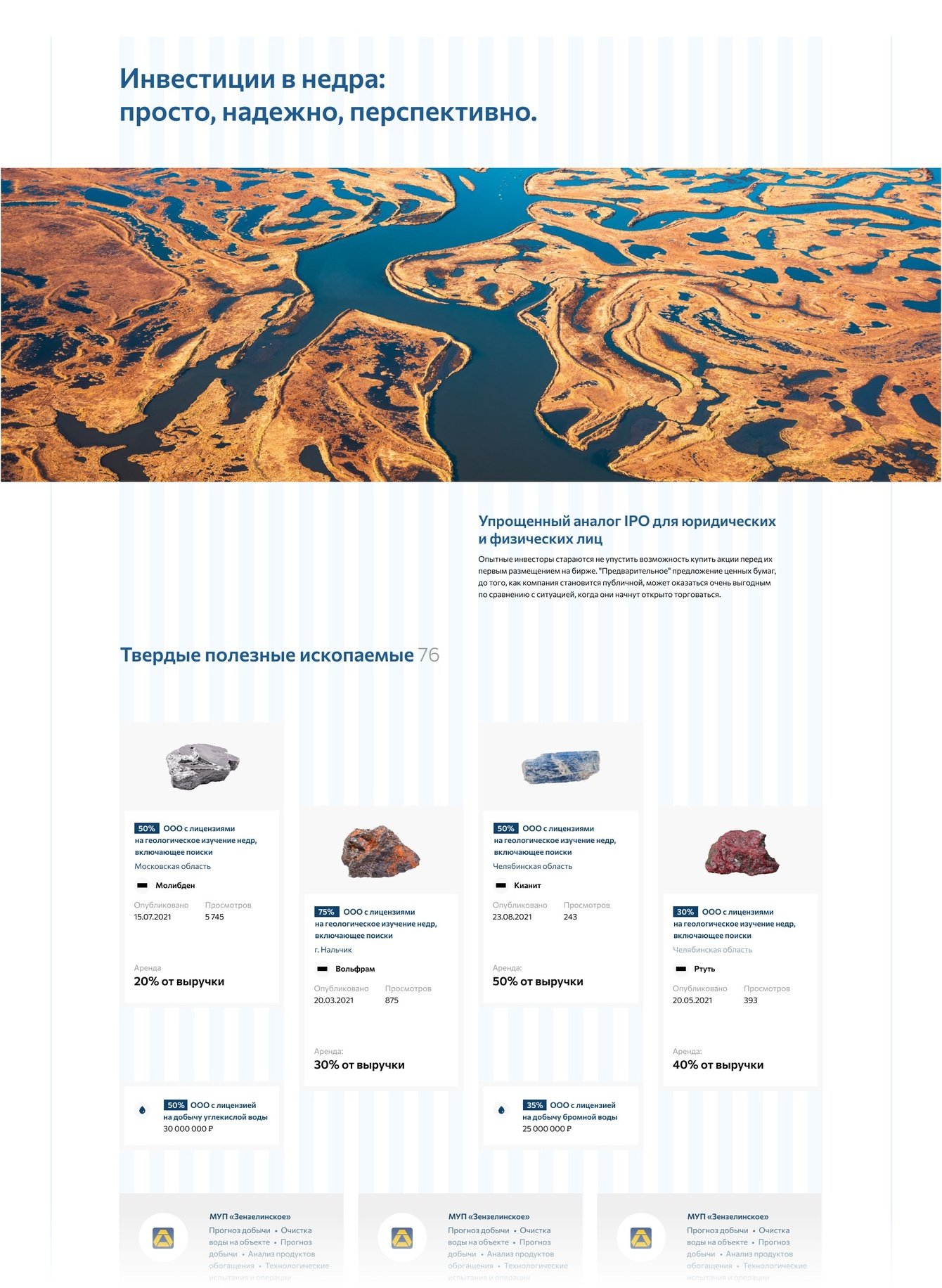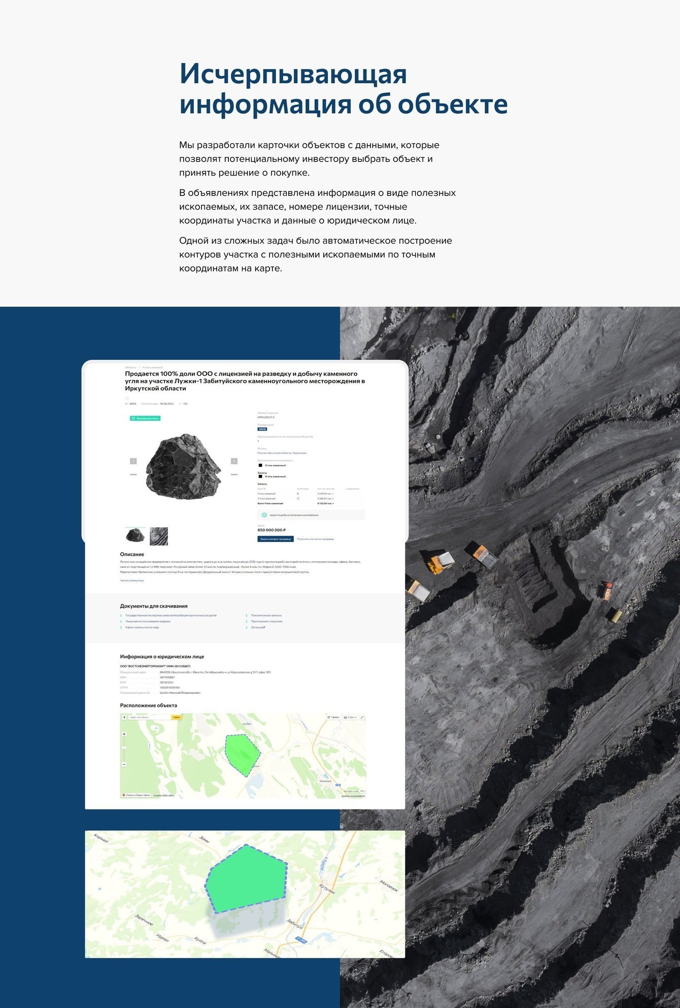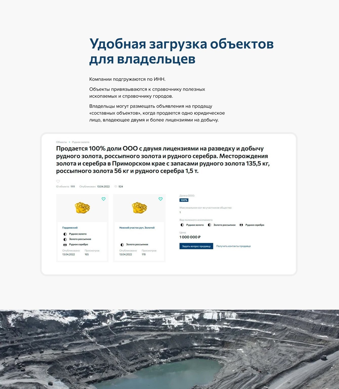 Задача – создать уникальную и удобную платформу для коммуникации продавцов объектов и инвесторов, включая физических лиц, на рынке недропользования.