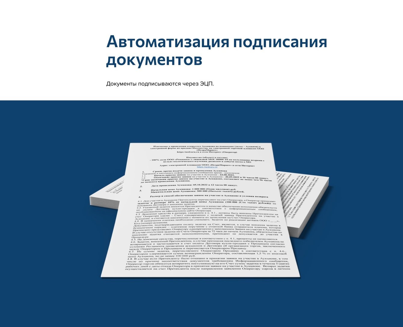 — Является технологической площадкой для проведения аукционов с ЭЦП документов по купле/продаже долей в компаниях, имеющих лицензии на недропользование.