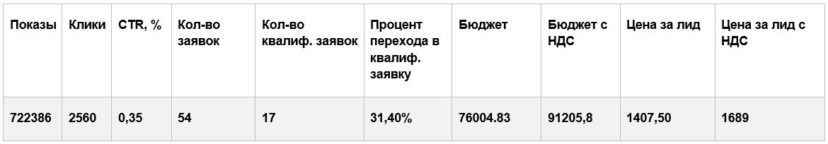 Для контроля эффективности кампании и рационального использования рекламного бюджета клиент установил ключевые показатели эффективности (KPI), которые помогут нам отслеживать прогресс и вносить необходимые коррективы в стратегию.