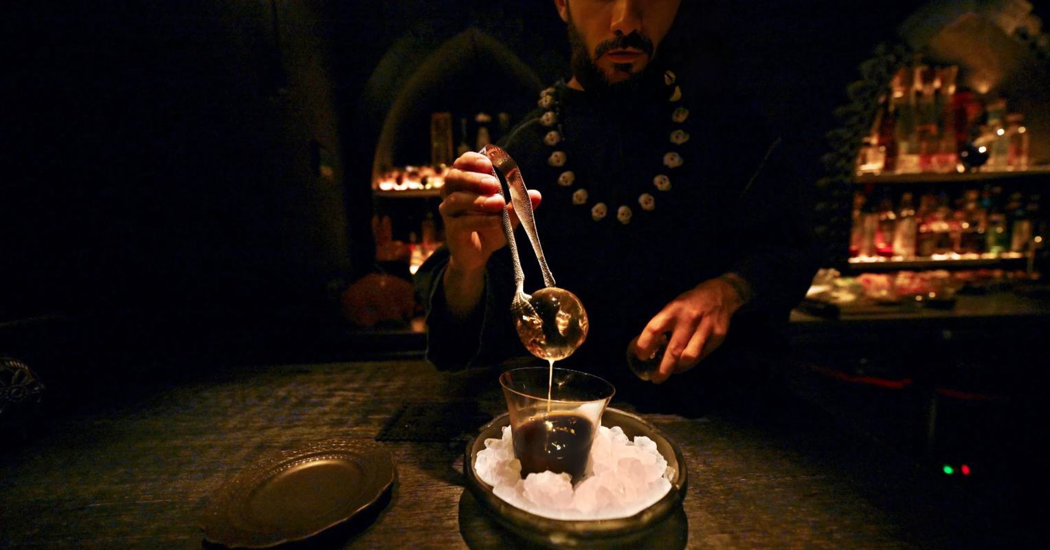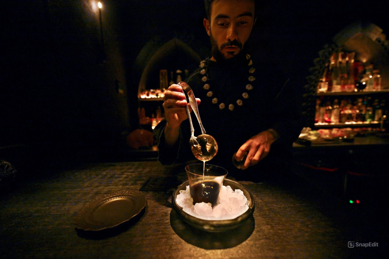 Коктейль «Нефть» получился насыщенным и многослойным. В его составе — выдержанный ром, Шу Пуэр Гун Тин, сок азербайджанской черешни, красный итальянский вермут и копчёный мескаль. Подача усилила концепцию: чаша из вулканического стекла в форме разреза недр, лед с сусальным золотом — визуальный «вау-эффект», который переосмысливает привычный образ нефти как «чёрного золота».
