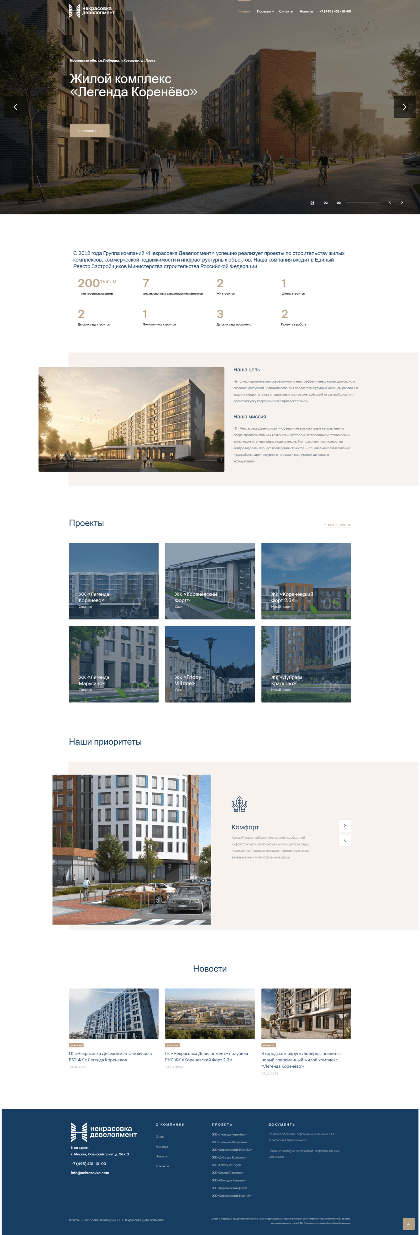 Сайт nekrasovka.com — это не просто визитка компании, а рабочий инструмент девелопера: он помогает продавать, презентовать, информировать и выстраивать доверие с разными типами аудитории. Проект был реализован в срок, получил положительные отзывы и стал важной частью цифровой экосистемы бренда.