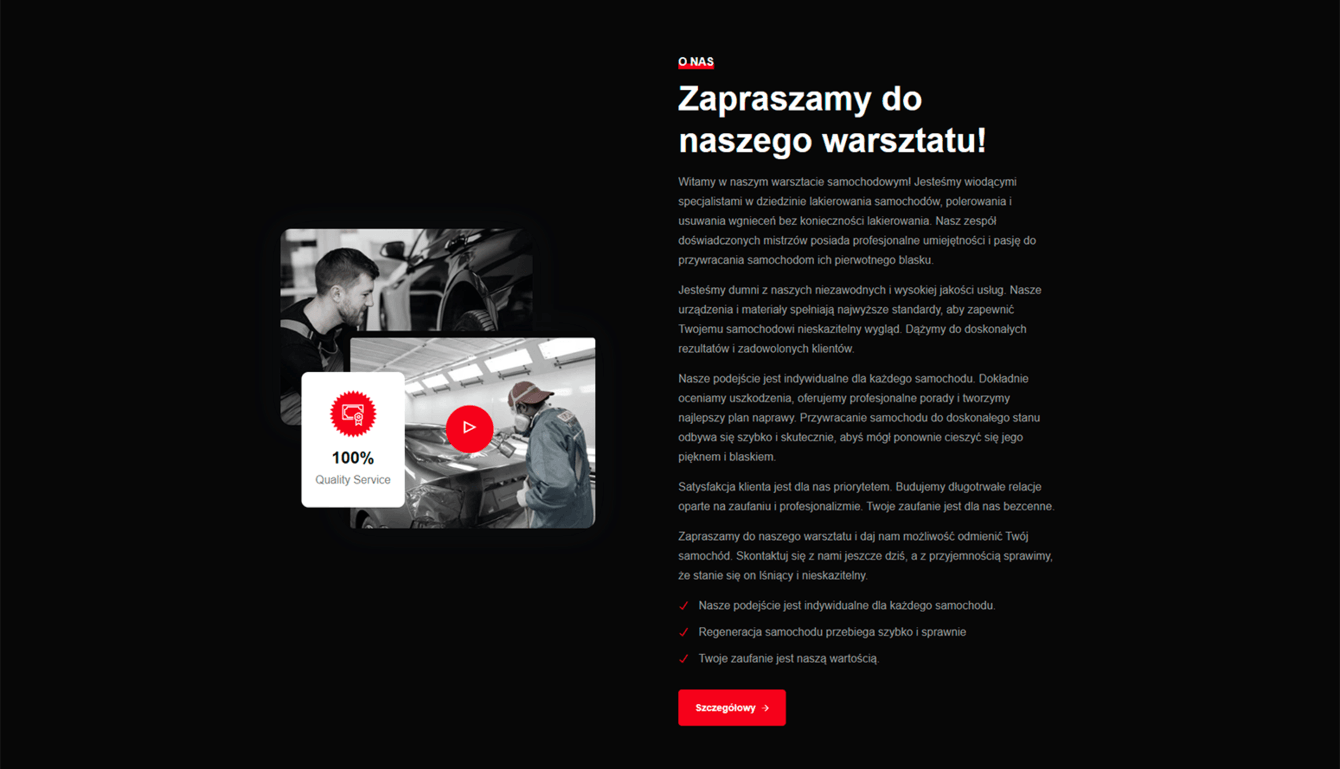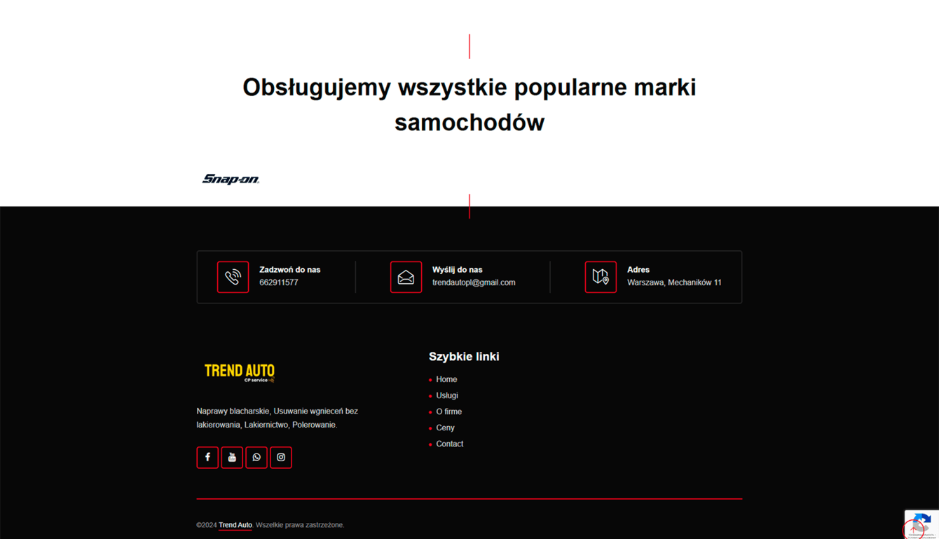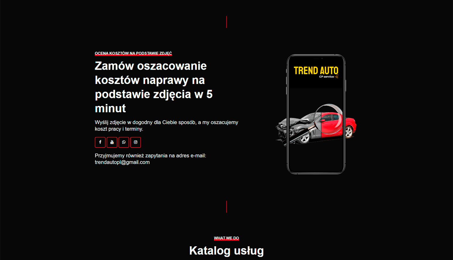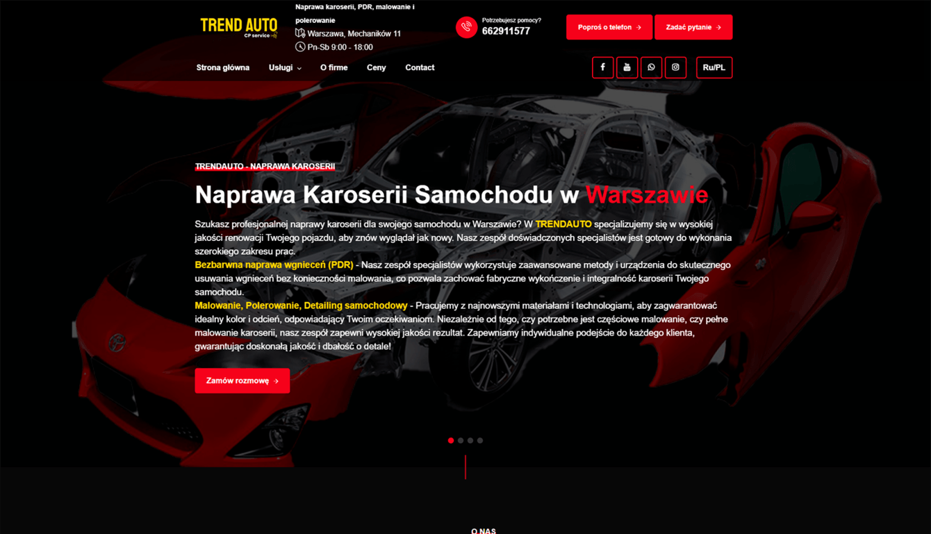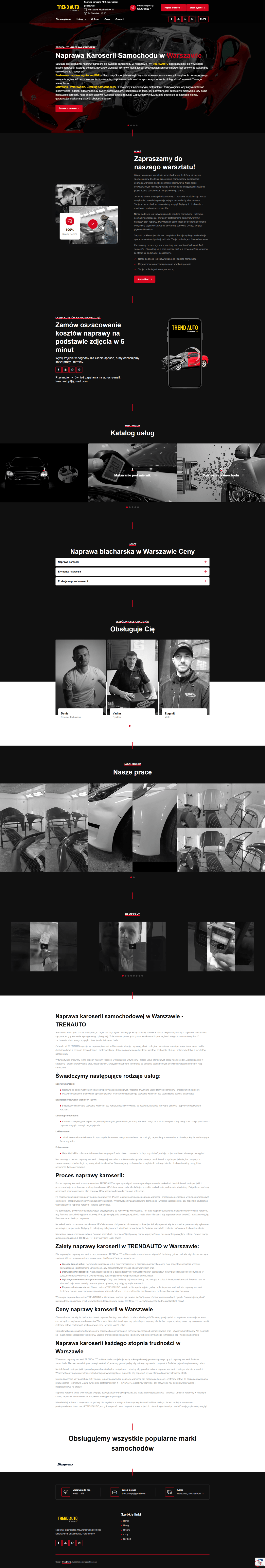Клиент:** Trendauto — центр ремонта кузова в Варшаве, специализирующийся на восстановлении после аварий, устранении вмятин без покраски (BUW), detailing, покраске и полировке.