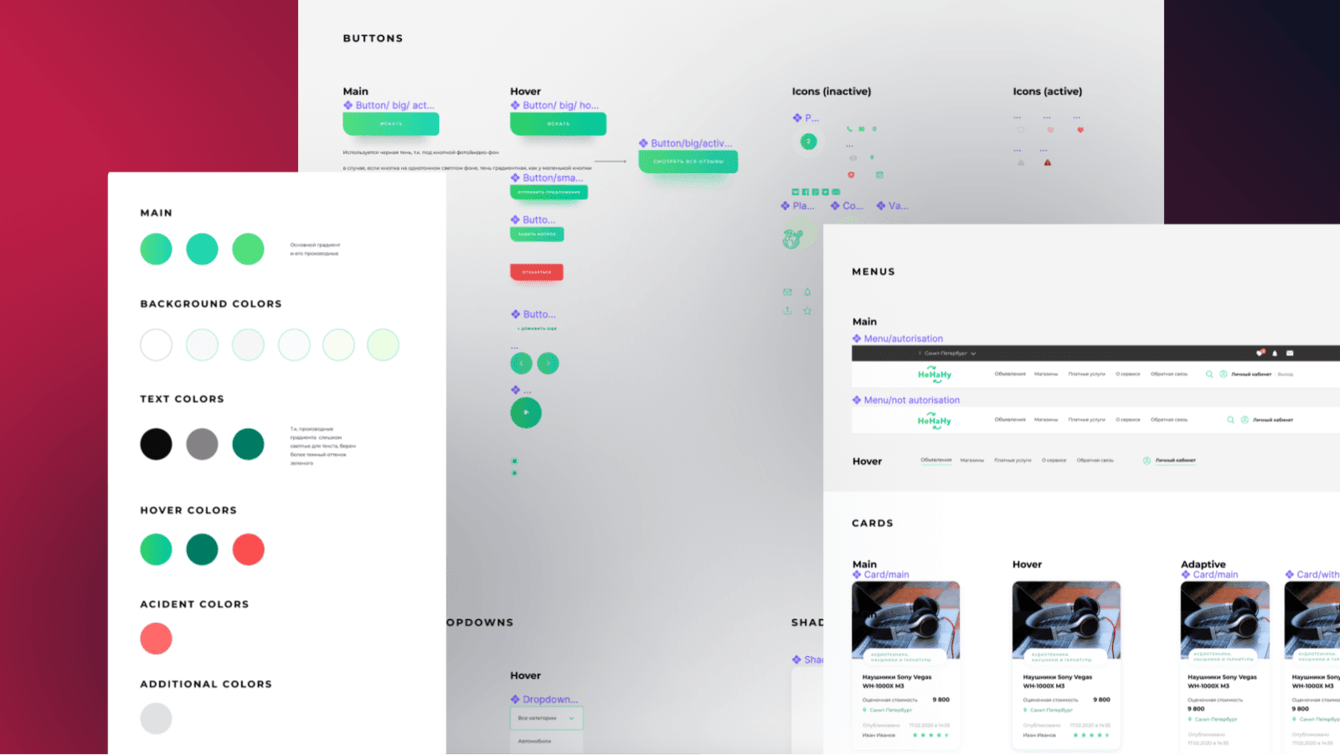 Параллельно с дизайном создавался UI-kit проекта, чтобы унифицировать стилистику элементов и упростить дальнейшую разработку, а также возможное масштабирование проекта.
