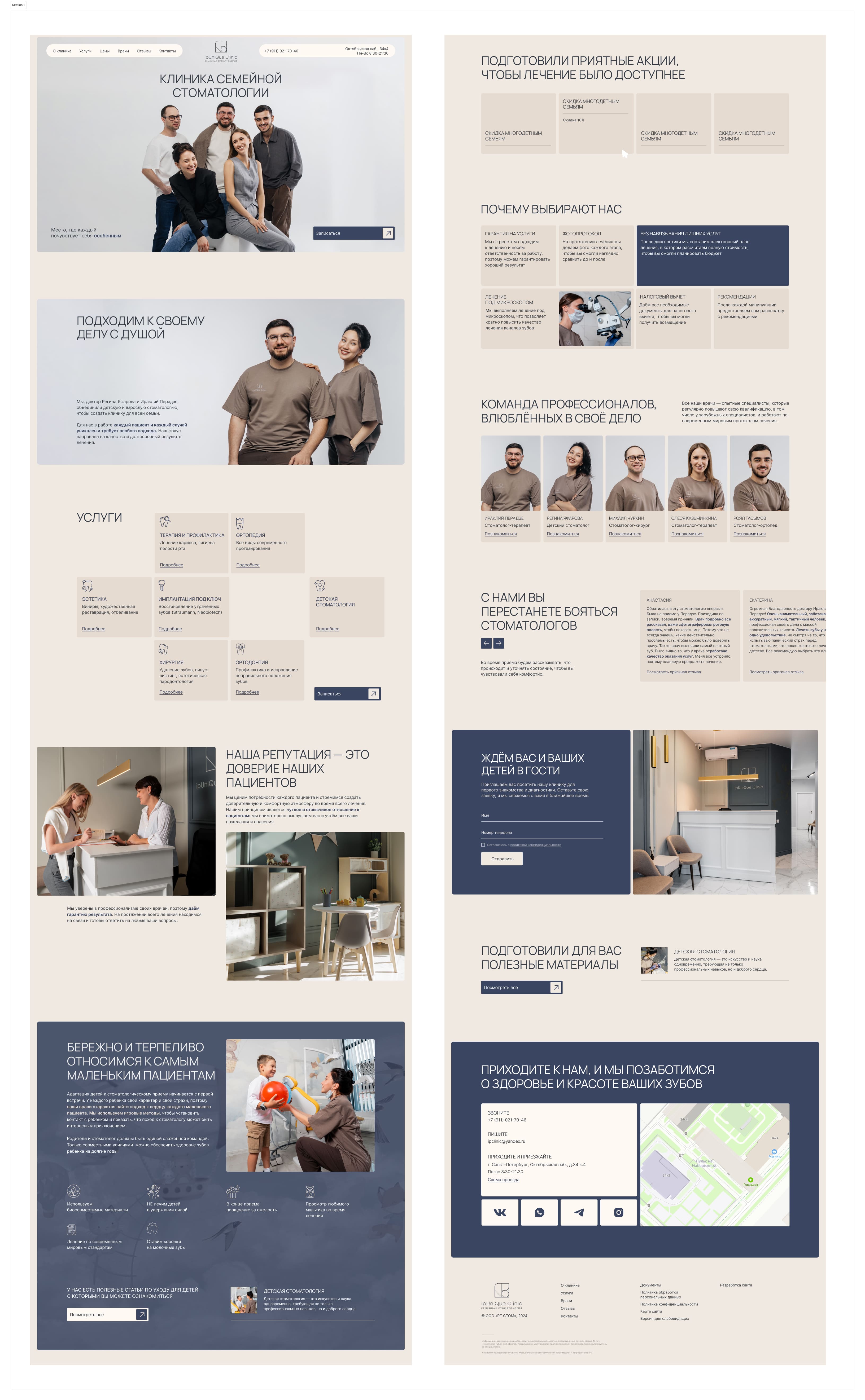 Заказчица — детский стоматолог и одна из основателей клиники. Обратилась к нам, так как хотела, чтобы сайт был не похож на сайты других стоматологий и передавал их особый подход, отношение к пациентам и ценности компании.