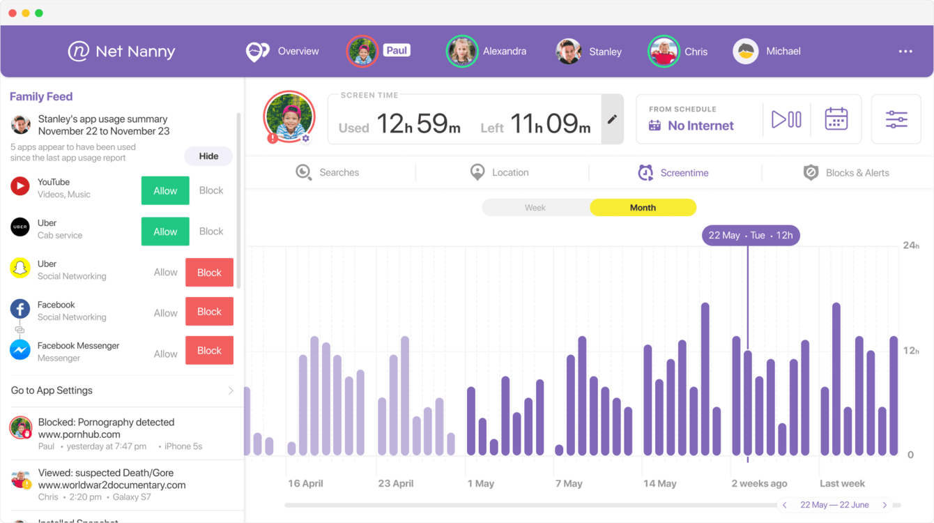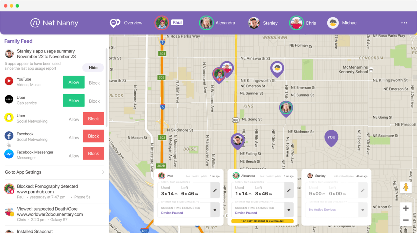 NetNanny — один из самых популярных в США сервисов родительского контроля, он помогает оградить детей от опасного и шокирующего контента. Приложения работают на iOS, Android, Kindle, Windows и MacOS.