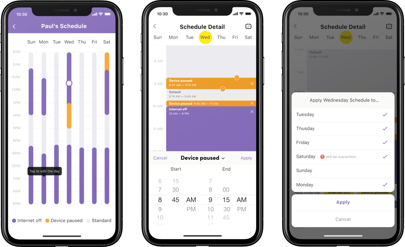 У родителей есть ещё несколько возможностей: NetNanny предлагает фильтры по категориям контента, есть возможность составить собственные чёрные и белые списки сайтов, на время ограничить интернет или использование телефона.