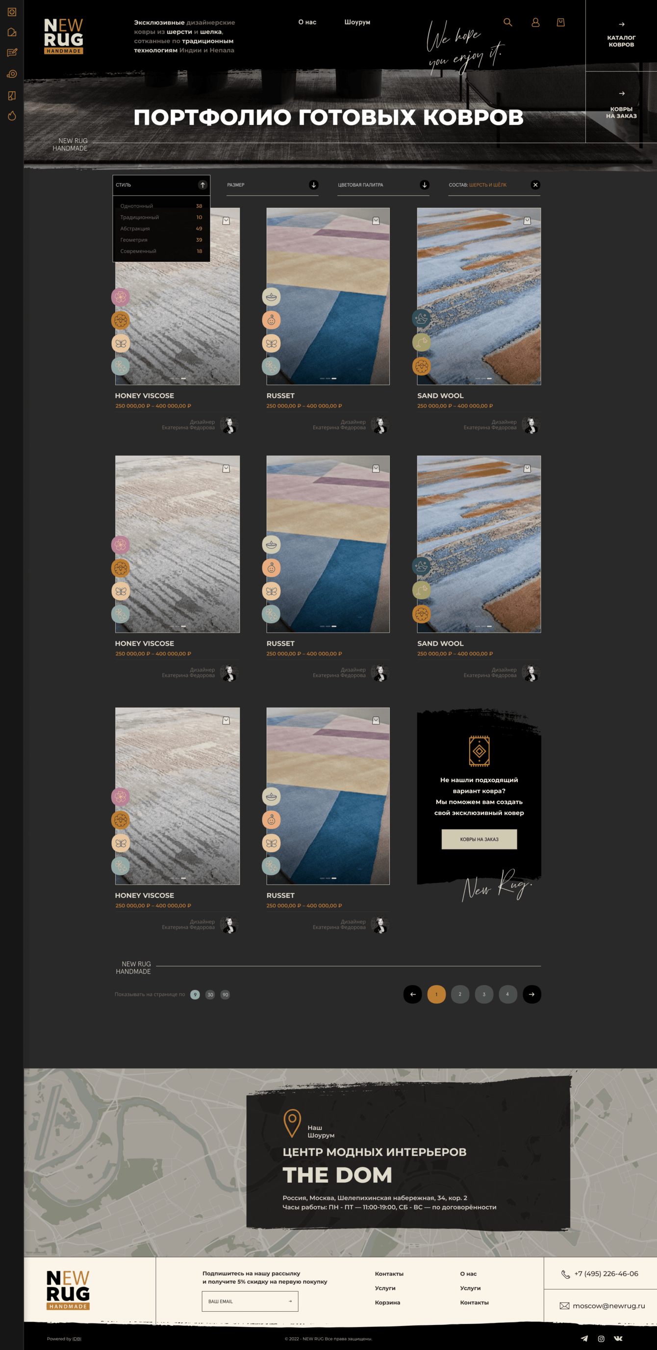 К нам обратилась компания NewRug, с целью обновить свой текущий интернет-магазин, для придания большей индивидуальности и премиальности как самого сайта, так и подачи продукции(ручная работа, премиальность, дорогие качественные ковры)