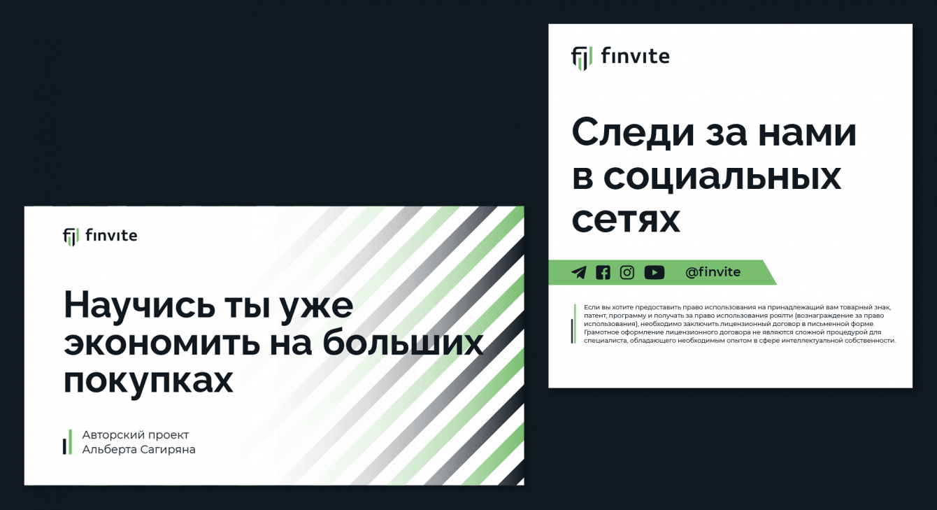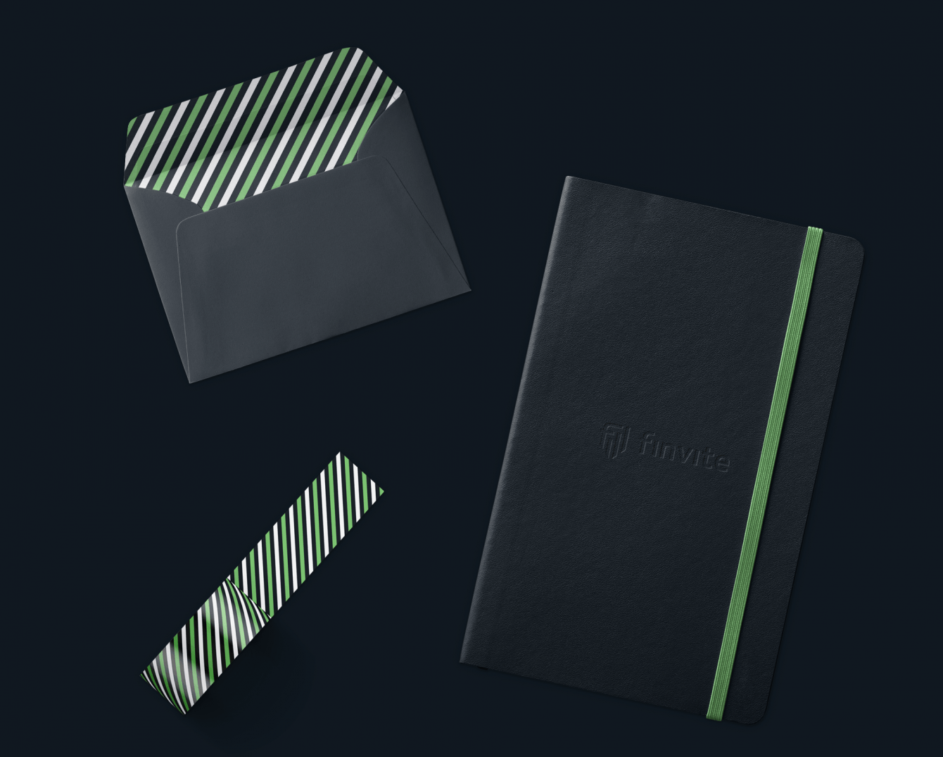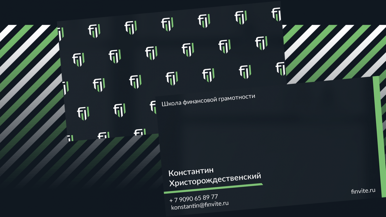Основные характеристики премиальности — минимализм, сдержанная палитра, лаконичность. Начало айдентике дал знак логотипа, содержащий: намёк на финансы — зелёный денежный цвет, букву «f» — первая буква названия школы, финансовый график — аналитическая составляющая и форма щита — надёжность, важная в сфере финансов. Далее айдентика строится вокруг этого знака с помощью градиентов, чёрно-зелёно-белой палитры, паттернов и свободной композиции с «воздухом».