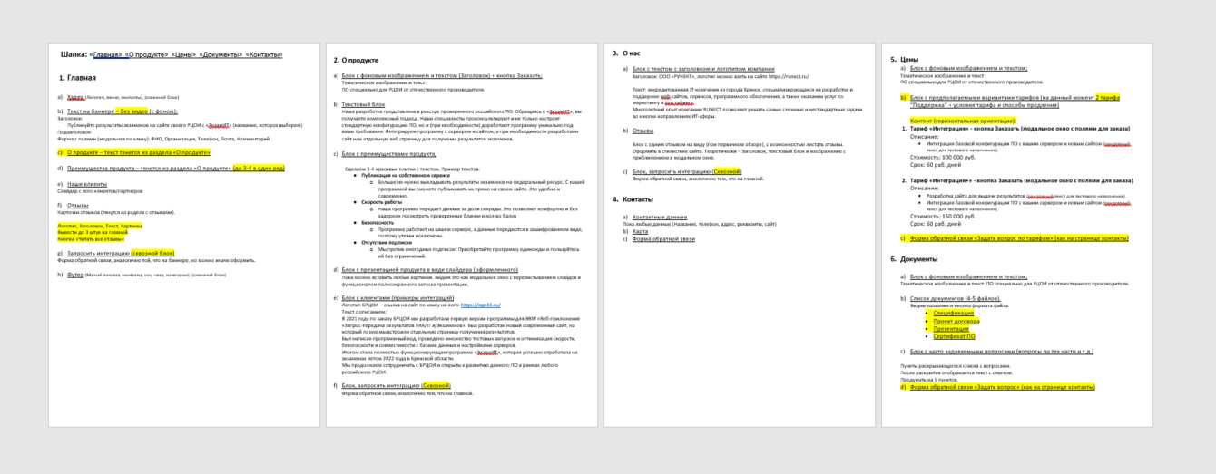 Чтобы успеть выполнить задачу в установленные сроки, было принято решение о запараллеливании процессов. Ещё на этапе нейминга мы прорабатывали структуру страниц сайта и его наполнение, сделали схему.