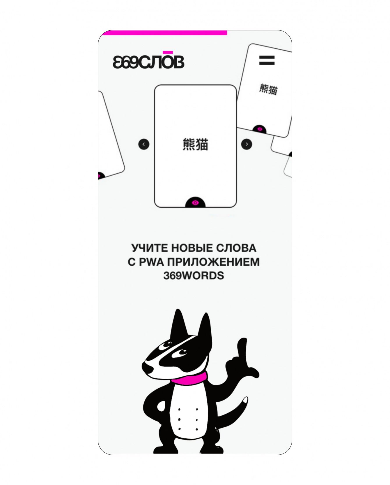 Придумать название и узнаваемый стиль прогрессивного приложения, которое позволяет создавать трехстронние карточки для изучения иностранных слов.