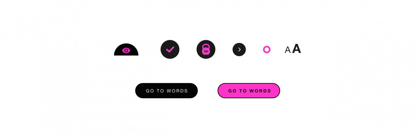 Так как приложение про слово и текст, то его основа - черно-белая. Яркий розовый служит узнаваемости и акцентным деталям.