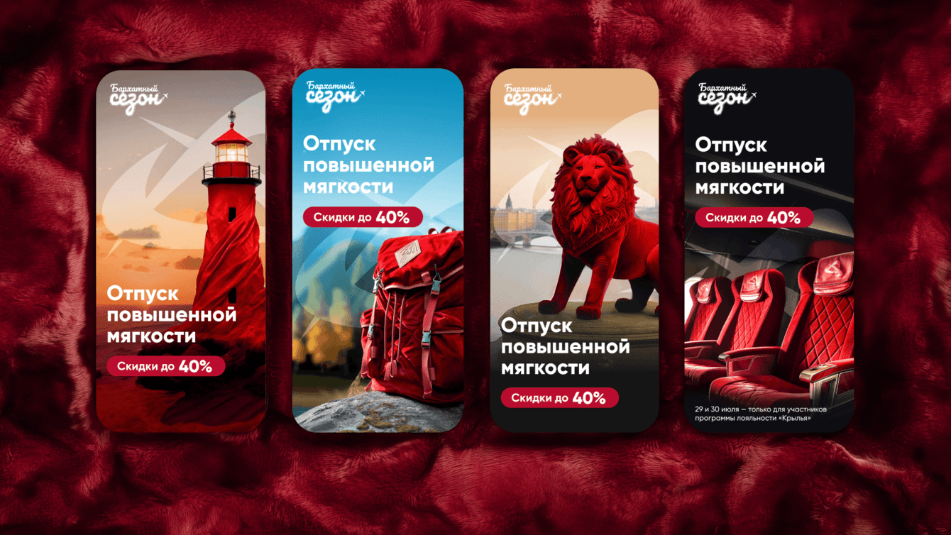 Второй год мы активно сотрудничаем со службой маркетинга Уральских авиалиний, помогая готовить и запускать рекламные кампании для акций «Билеты в лето» и «Бархатный сезон» с использованием нейрокреативов.