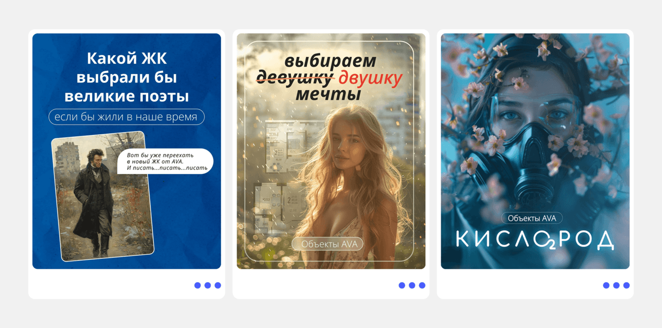 1. Посты с подборками квартир и расчётами, но с креативной подачей, ярким визуалом и копирайтингом.