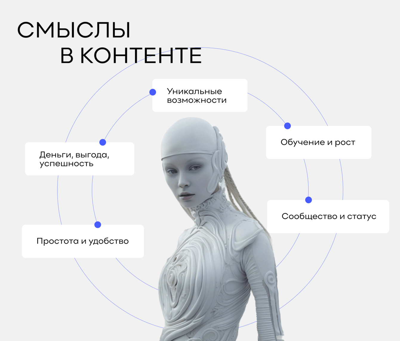 И снова здесь мы использовали аналитические способности ChatGPT, который помог нам выделить основные смыслы, которые мы с командой уже расширили и уточнили.