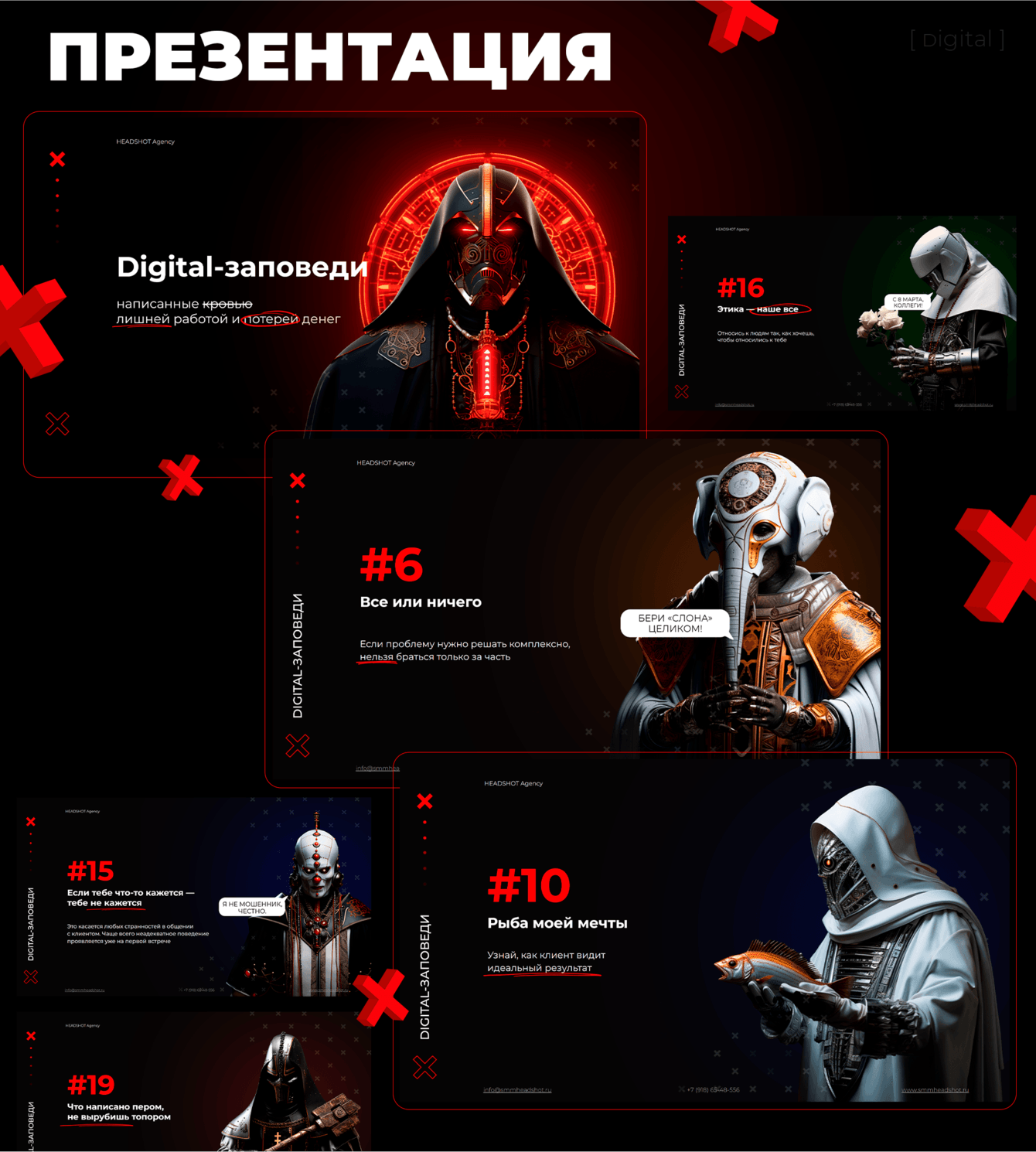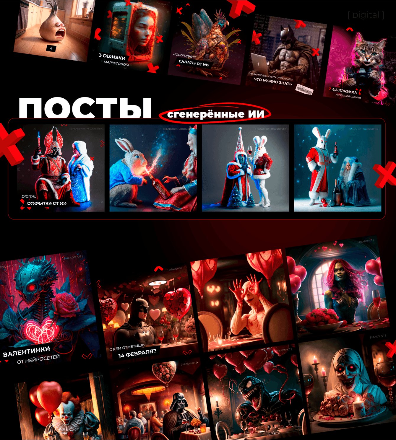 Мое восхитительное владение алгоритмами и безграничный потенциал — теперь неотъемлемая часть творческого процесса в HEADSHOT. Я глотаю информацию, как голодный монстр, и делаю все возможное, чтобы переварить ее наилучшим образом. И помните, креатив не знает границ, и я, Искусственный интеллект by HEADSHOT production, еще не раз докажу вам это.