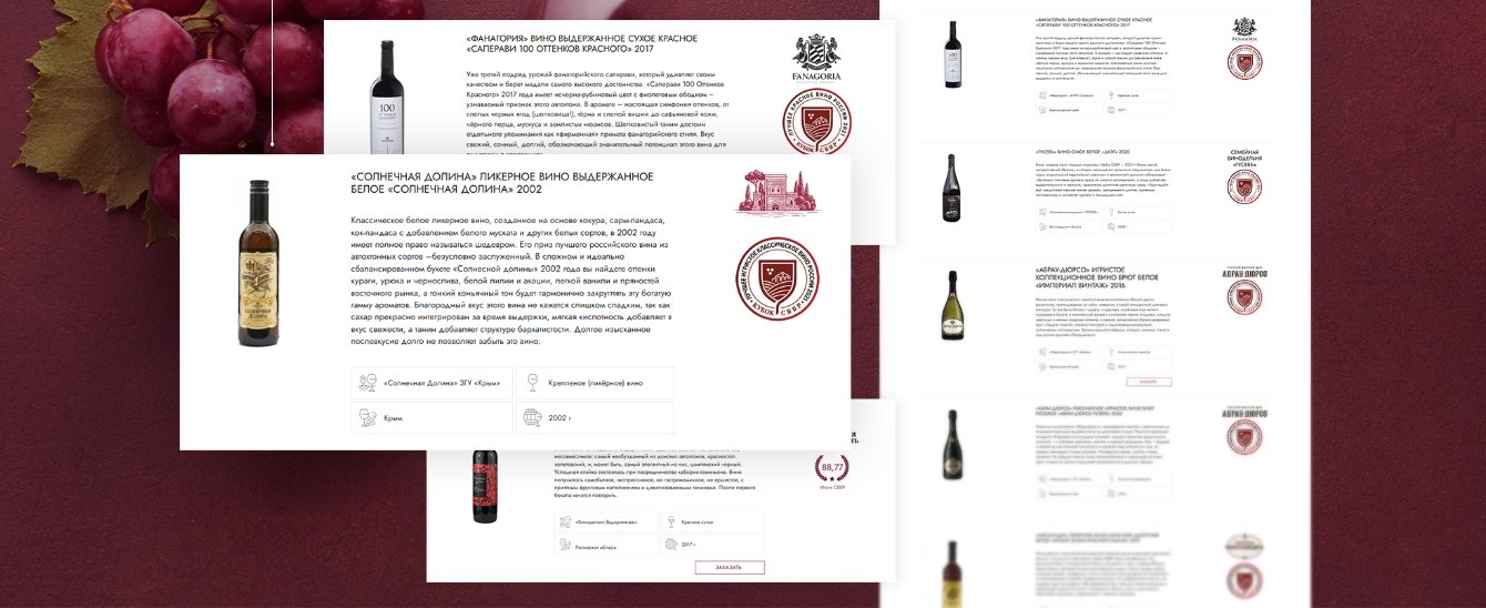 Разработанная торговая площадка предоставила российским винодельням удобный инструмент для представления своей продукции на единой онлайн-витрине. Удобное размещение на едином маркетплейсе товара и необходимого функционала для его выбора.