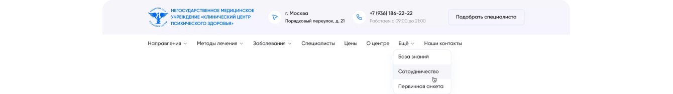 «Выражаю бесконечную признательность компании Belberry за качественную работу при работе над сайтом НМУ «Клинический центр психического здоровья». Компания разработала дизайн, логотип, колористику, структуру сайта, все идеи были актуальные, своевременные, свежие и одновременно дальновидные. Сайт получился профессиональный, модный, удобный, с понятным алгоритмом. Было соблюдено главное условие – налаженная система взаимодействия заказчика и исполнителя. Отдельное спасибо Марии Лопатиной, которая всегда была на связи и своевременно реагировала на возникающие замечания, доработки, корректировки. Команда Belberry – большие молодцы, буду рекомендовать их знакомым!»