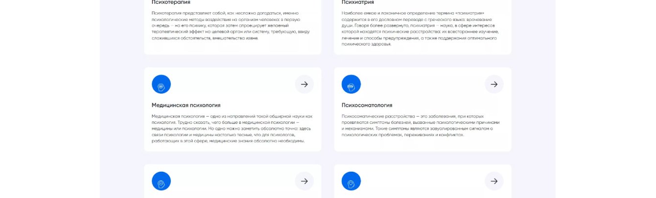 В блоках добавлены соответствующие CTA-кнопки, чтобы пользователю было удобно ориентироваться на веб-сайте