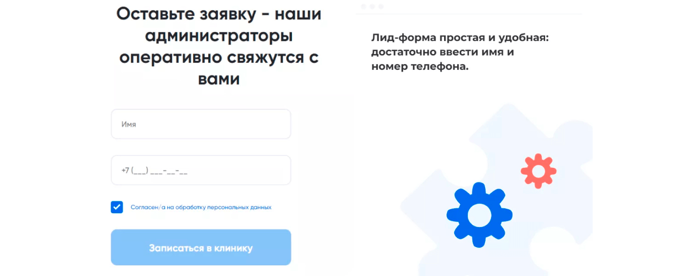 ● Добавление лид-форм и удобной первичной анкеты пациента, чтобы снять страх перед первым посещением.