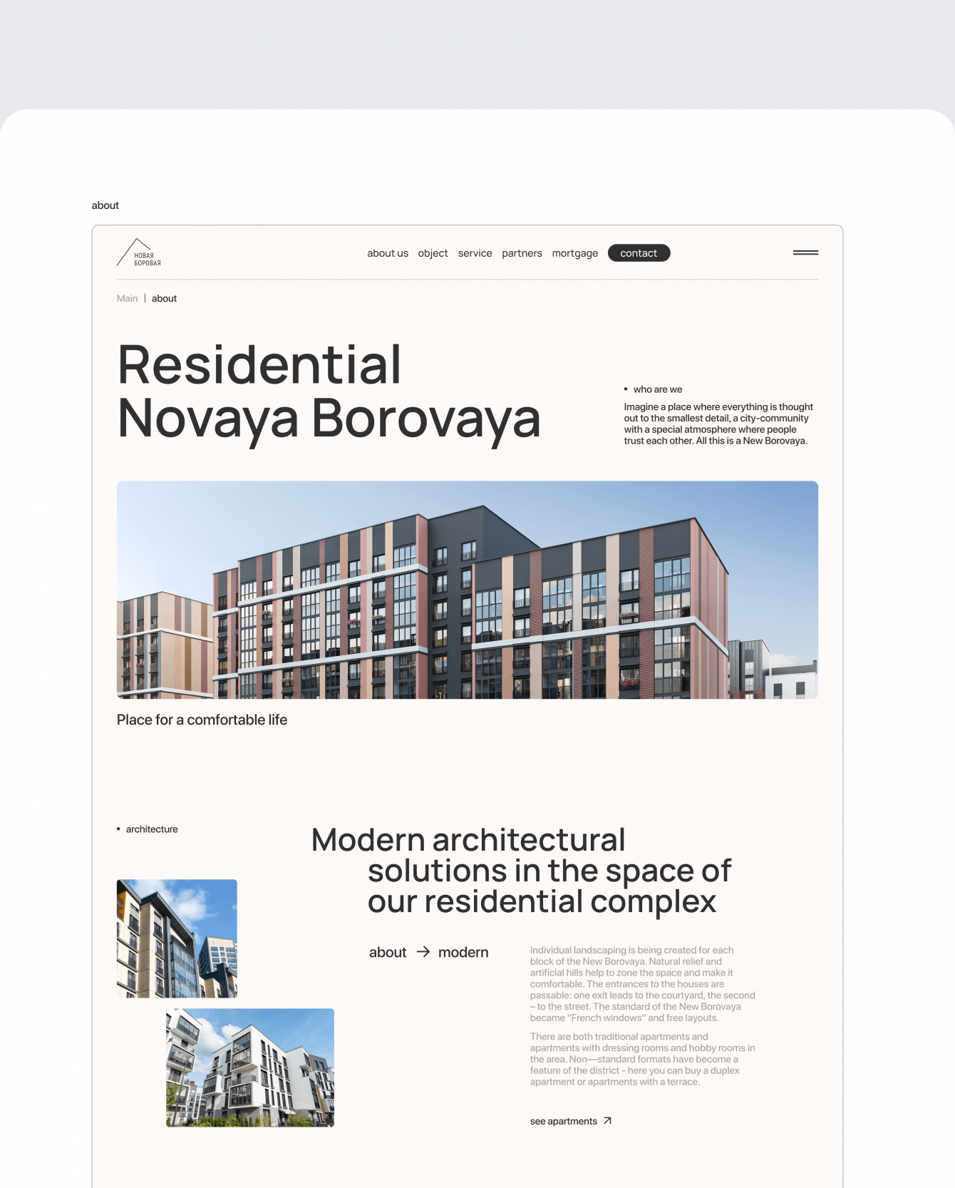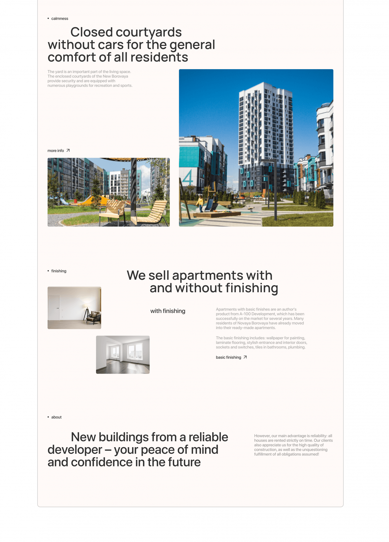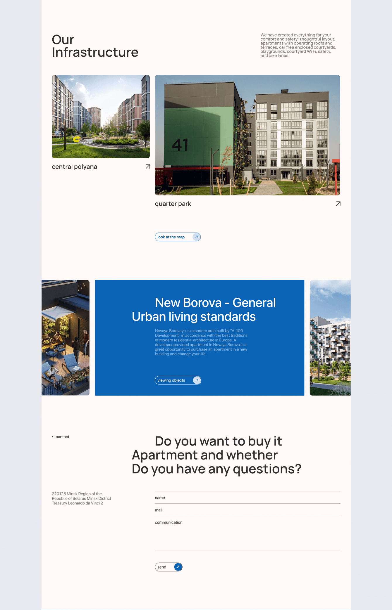 Новая Боровая - жилой комплекс, позиционирующий себя, как город-сообщество с особой атмосферой, где люди доверяют друг другу. Район располагается на участке площадью более 100 гектаров, рядом с главным проспектом Минска. Проект одержал победу в премии «Home Awards: Лучшее для жизни в сфере ремонта, строительства, архитектуры и дизайна Беларуси» в номинации «Лучший жилой район».