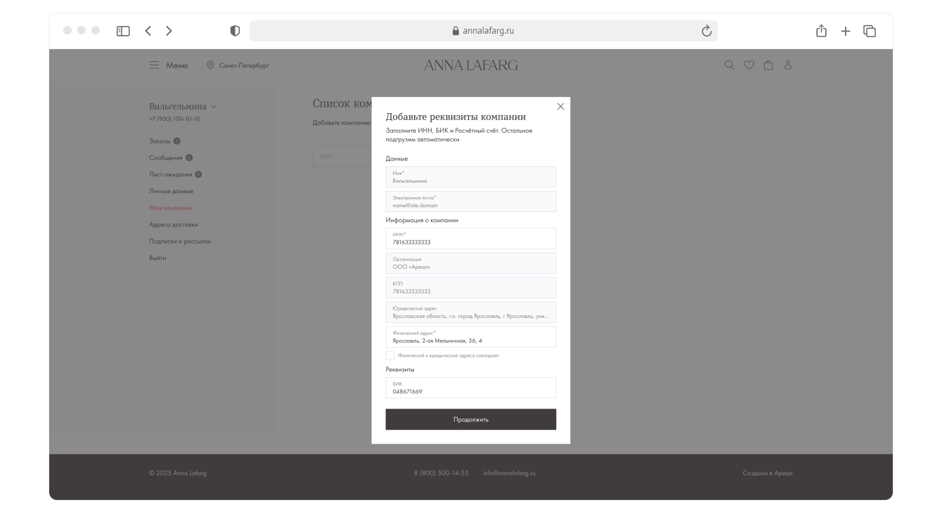 Параллельно с разработкой нового сайта команда Anna Lafarg решила полностью перестроить внутренний учет — старая учетная система была заменена на 1С. Это означало, что интеграцию мы проводили с постоянно меняющимся сервисом. Дополнительным вызовом стало обновление большинства фото-контента. В итоге на каждом этапе мы точечно настраивали и адаптировали процесс синхронизации.