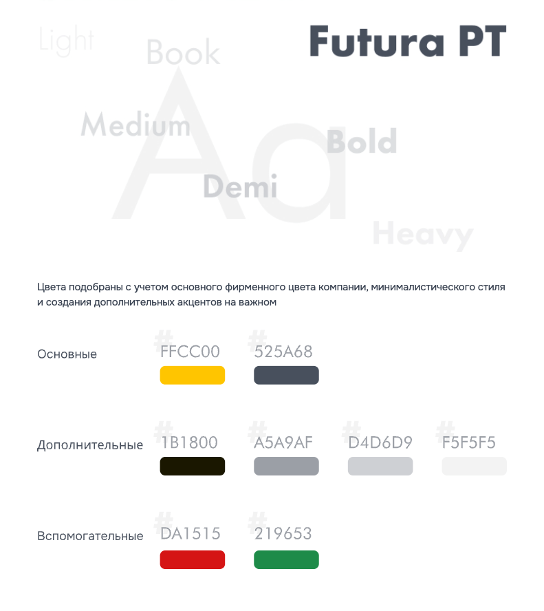 Цвета подобраны с учетом основного фирменного цвета компании, минималистического стиля и создания дополнительных акцентов на важном