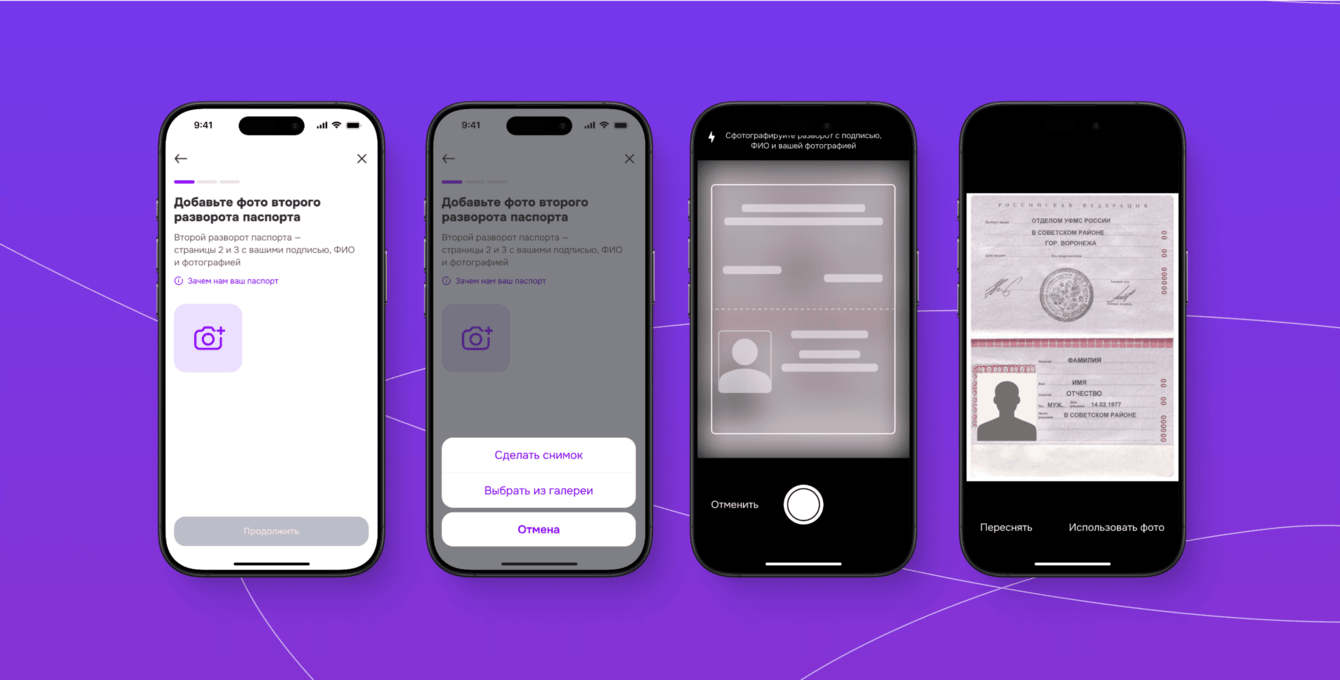 - Спроектировать будущее приложение, при этом сделать его максимально удобным для пользователей и обойти конкурентов; продумать безопасность приложения для загрузки документов и личных данных; предусмотреть интеграцию сторонних сервисов, например, DaData, Webim, Amplitude, Appmetrica, VisionLabs.