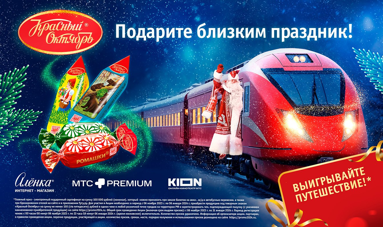 Участником можно стать, купив продукцию Красного Октября на сумму от 150 рублей. Это открывает возможность выиграть сертификат на 100 000 рублей от сервиса Туту.ру.