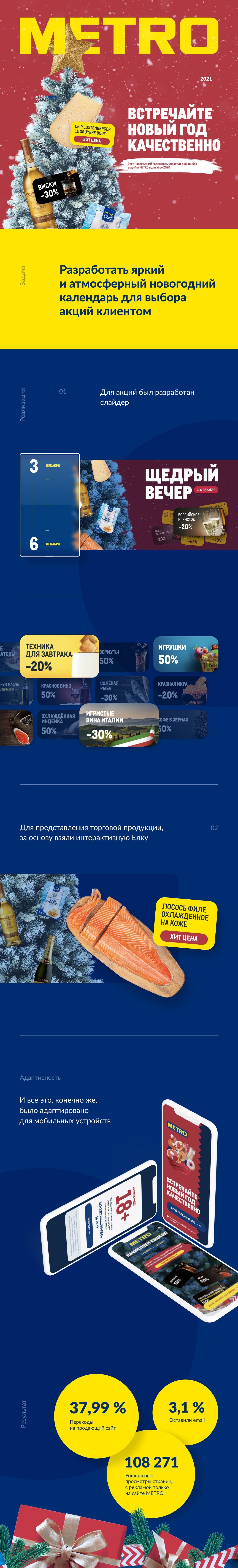 Разработать яркий и атмосферный новогодний календарь для выбора акций клиентов.