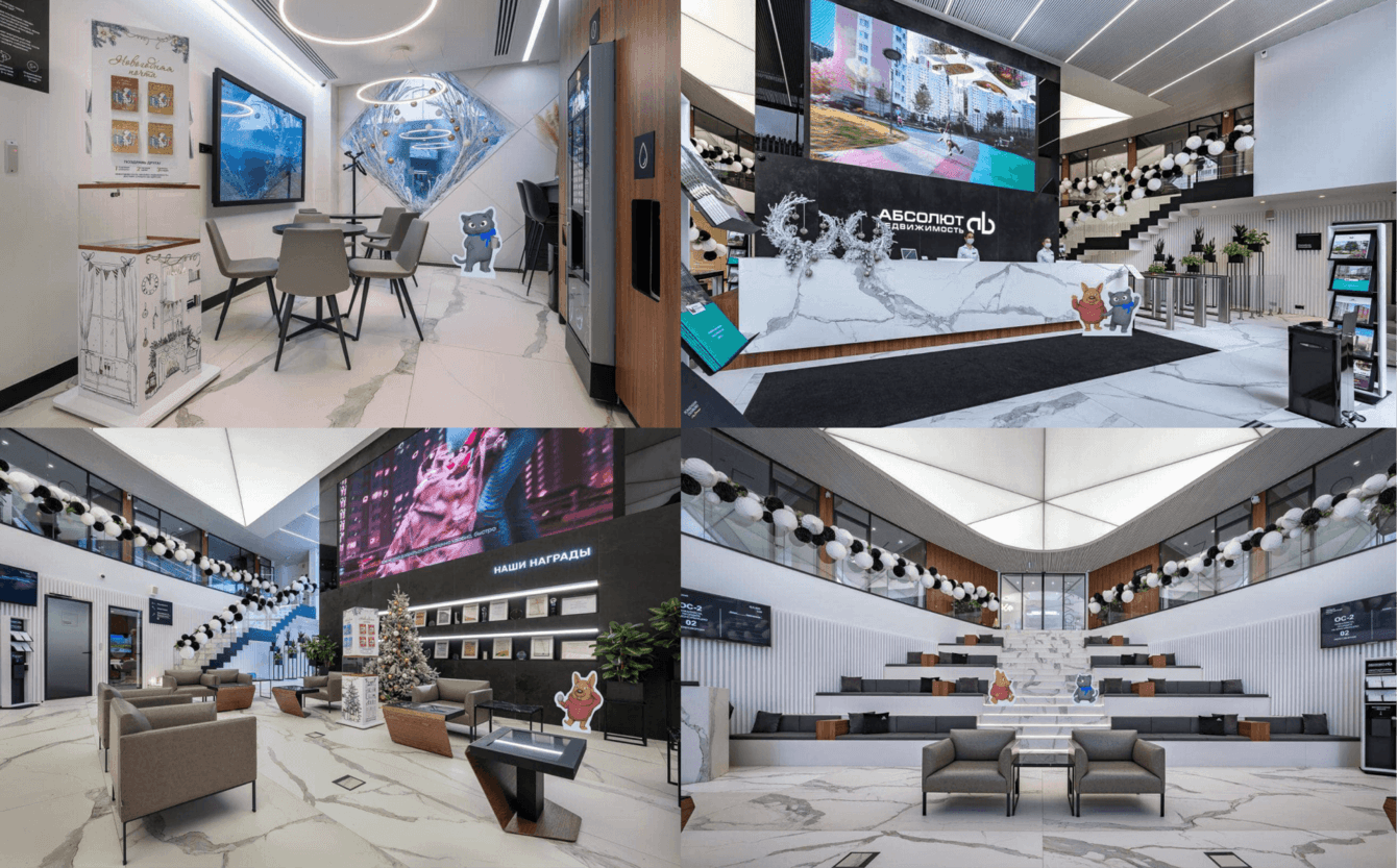 Для этих целей мы мы создали цифровые изображения персонажей и превратили их в ростовые фигуры. Они использовались для офлайн-продвижения в точках продаж Абсолют Недвижимость.