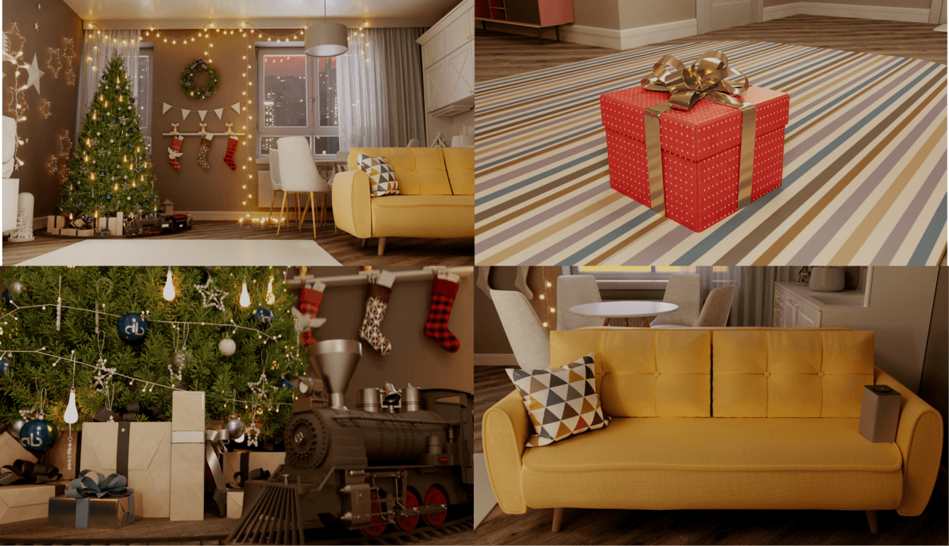 Специально для проекта наш композитор написал несколько вариантов музыки, которая отсылает к популярным новогодним трекам.