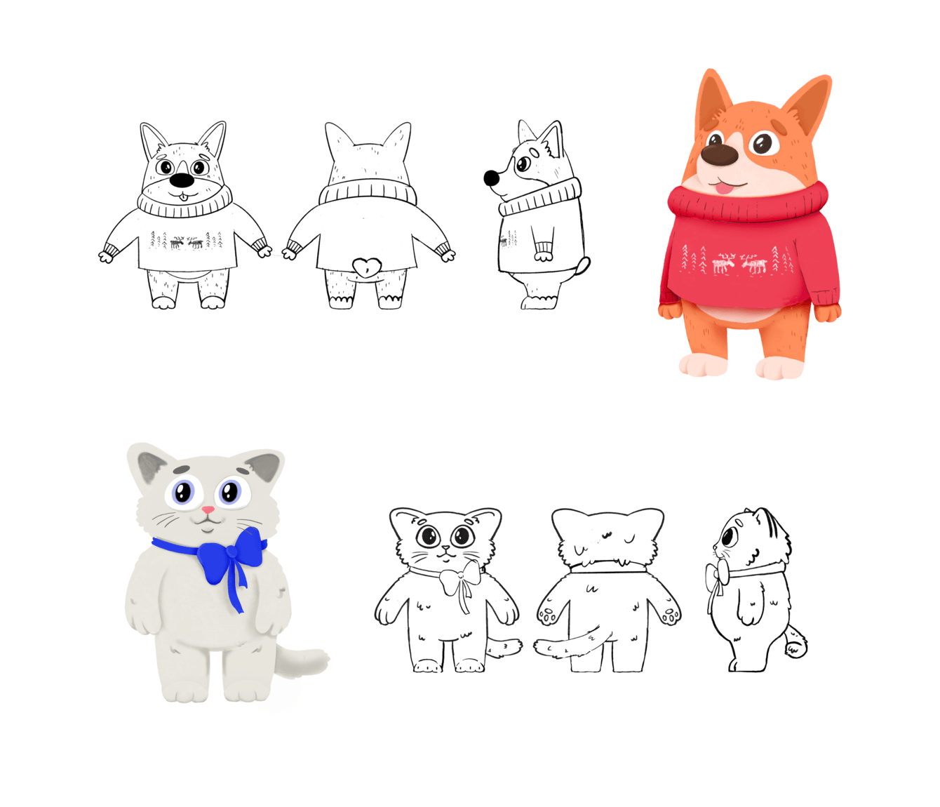 Поэтому в качестве героев ролика мы предложили взять двух домашних животных — котёнка и собачку породы корги. У них разные характеры: кот хитрый и целеустремленный, а пес более наивный и веселый.