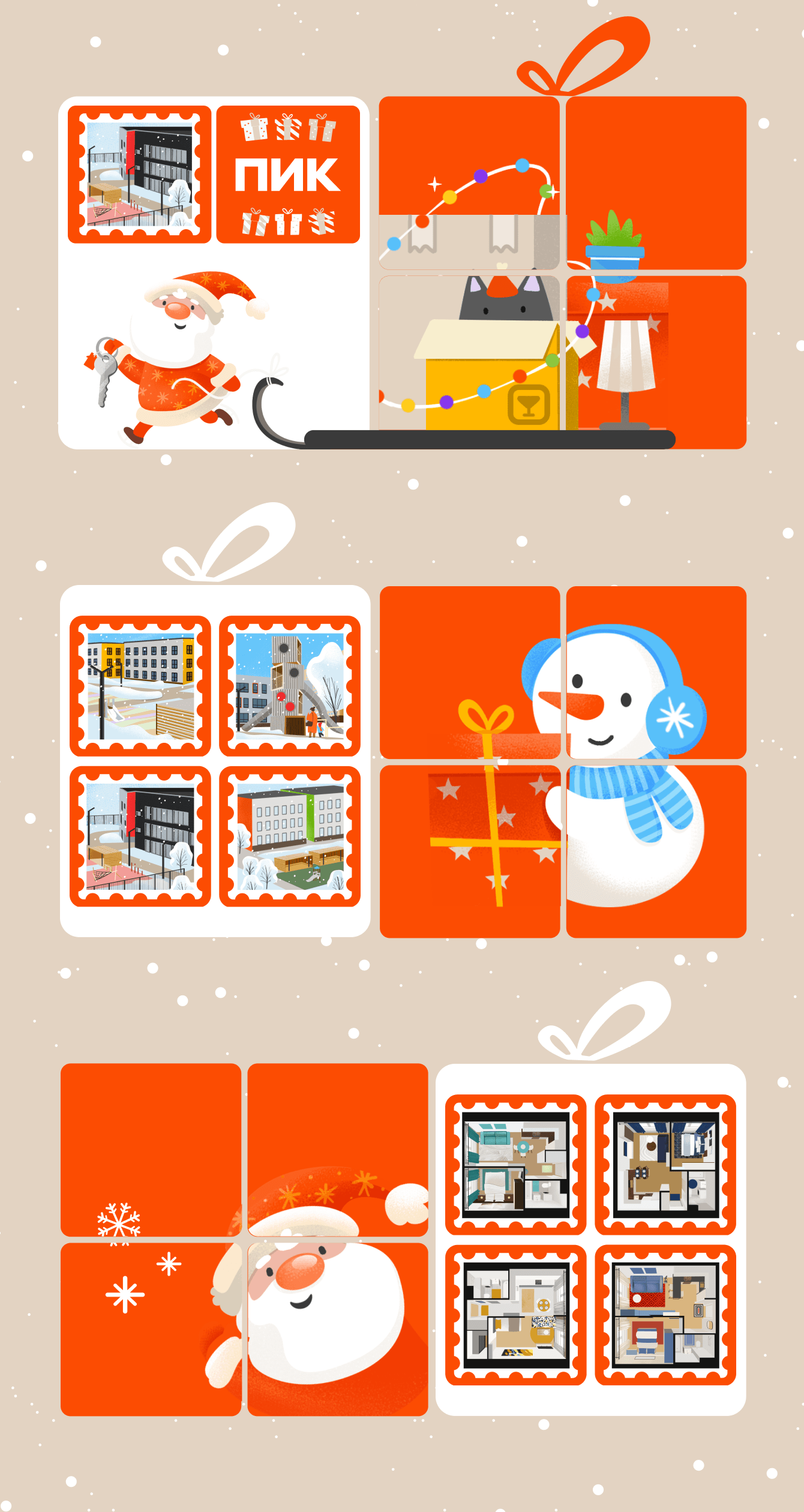 Важно было не только раздать подарочные промокоды в необычной форме, но и ближе познакомить пользователей с проектами ПИК. Подчеркнуть их особенности, повысить интерес к бренду и нативно показать многообразие инфраструкту́ры жилых районов ПИК.