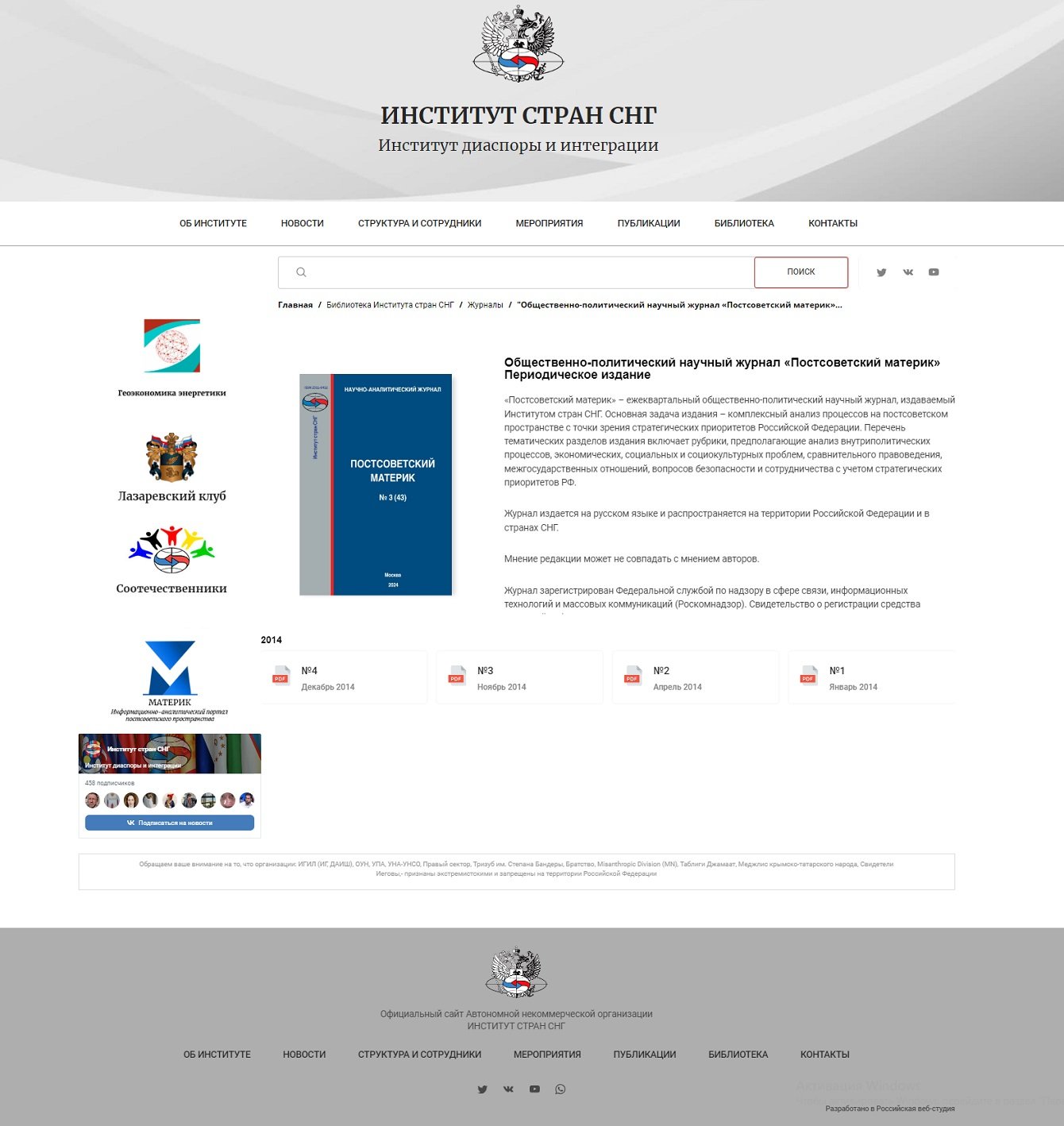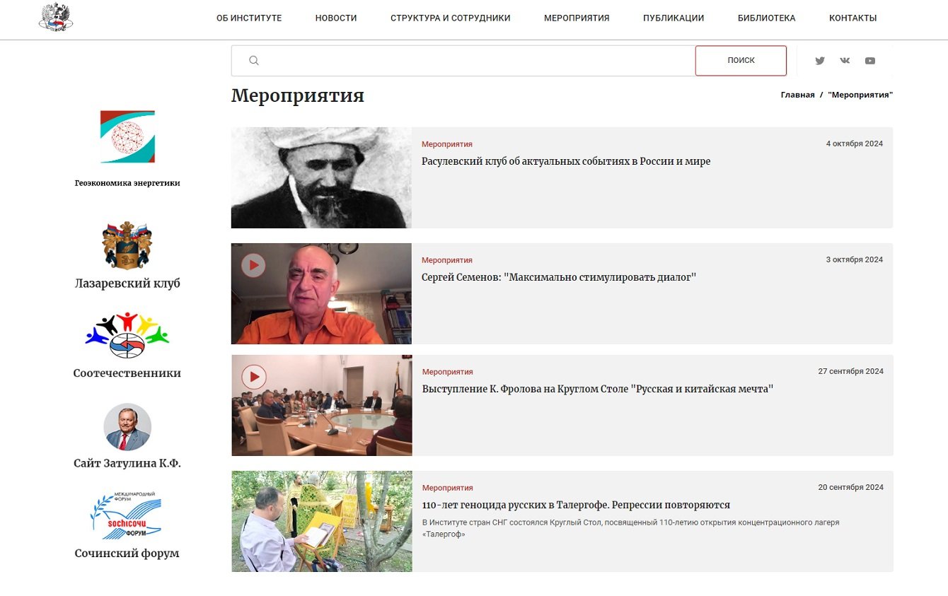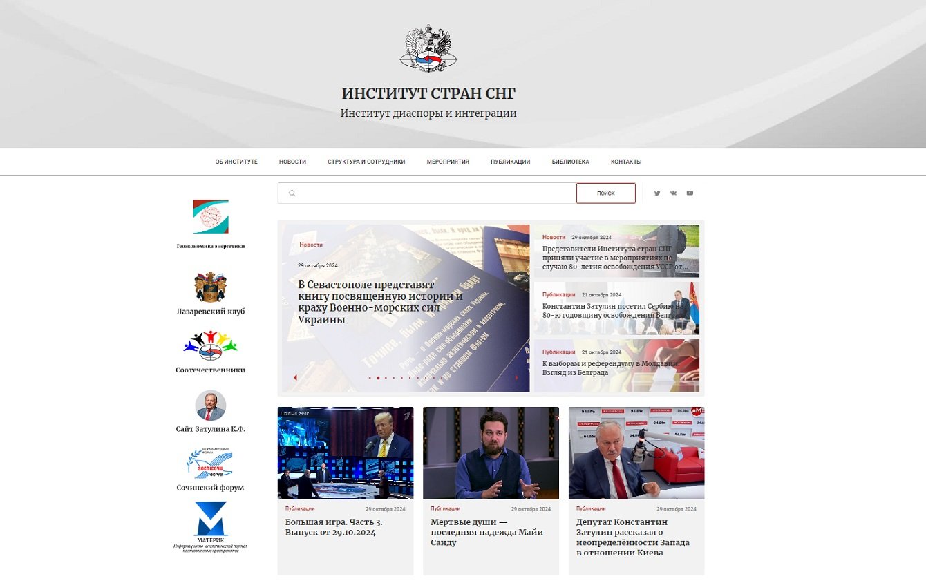Сайт клиент видел как информационную площадку, которая будет носить просветительский характер, предоставляя доступ к разнообразной информации и материалам, способствующим пониманию и анализу социально-политических и экономических процессов на постсоветском пространстве.