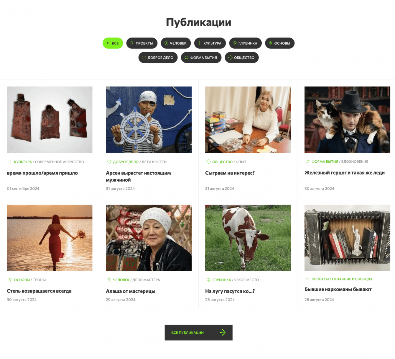 Клиент с первых слов дал понять, что проект должен быть особенным. И ключевым требованием была яркая индивидуальность портала. В этом нам помог Дмитрий Вирже — известный омский художник, который не только разработал логотип, но и предложил неожиданную ярко-салатовую цветовую гамму для дизайна. Мы сначала отнеслись к этому цвету с сомнением, но благодаря дизайнерскому таланту нашей команды, зеленый был органично интегрирован в стиль сайта, придав ему запоминающийся вид.