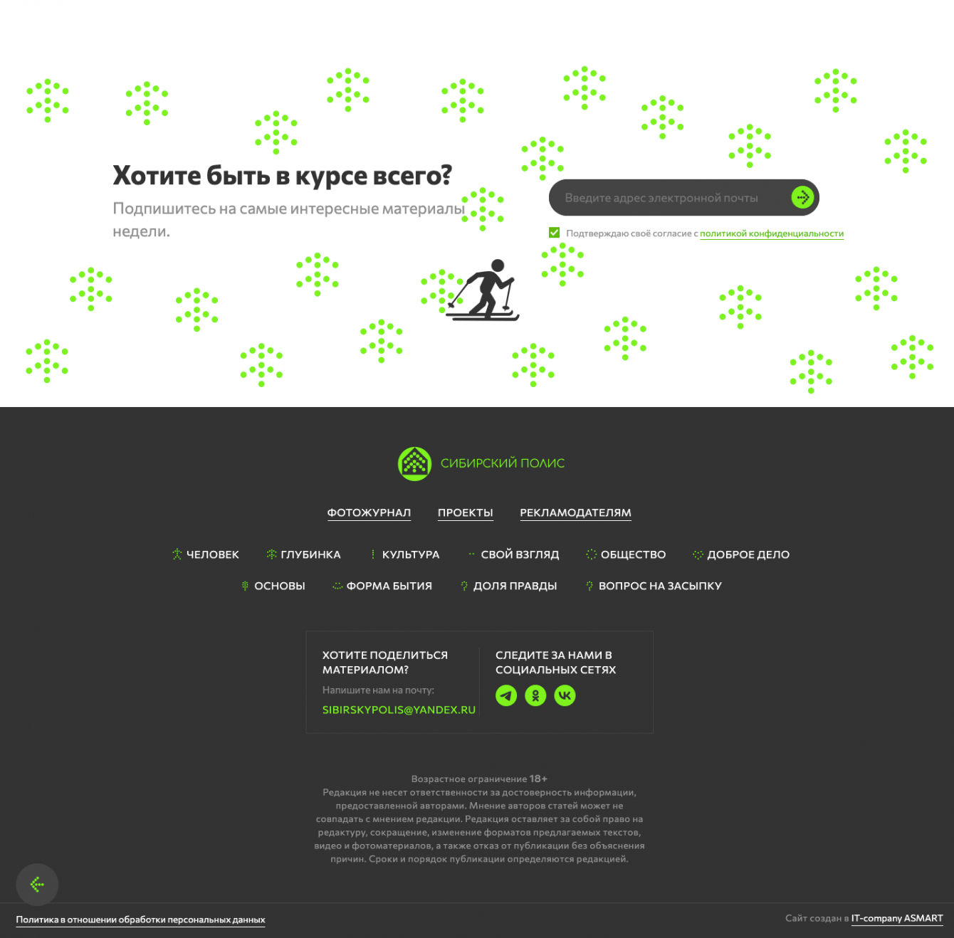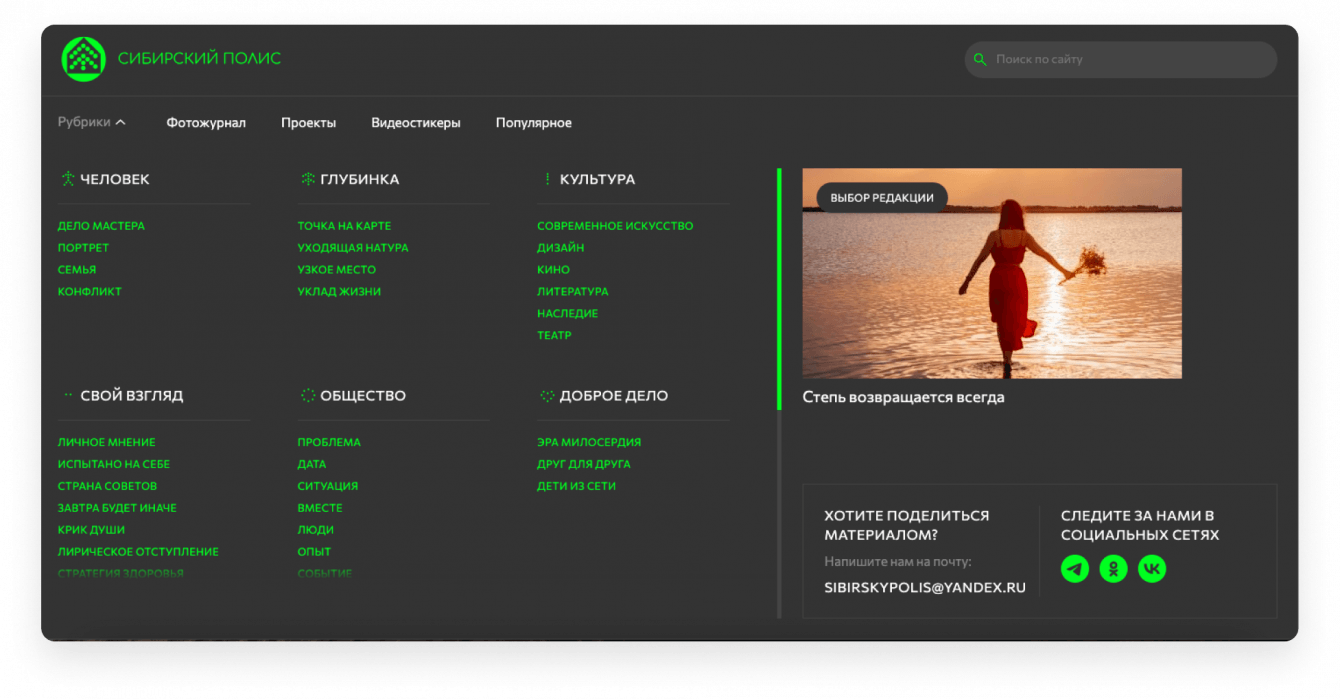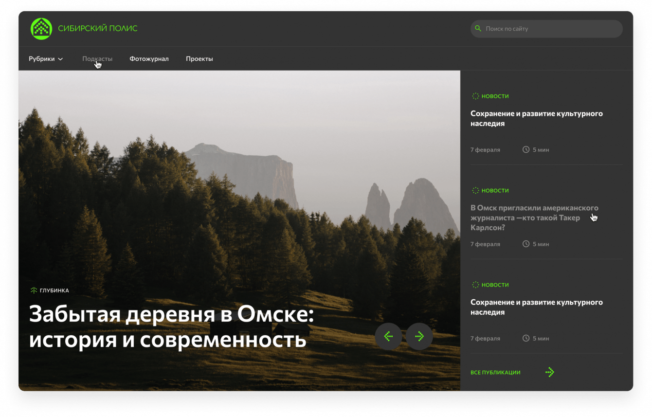 Когда компания «Сибирский Полис» обратилась к нам с задачей создания новостного портала для региона, мы и не подозревали, что этот проект окажется таким интересным и... таким сложным! Более 15 встреч с клиентом, мозговой штурм с командой, участие омского художника Дмитрия Вирже и работа по ночам, а также исправления багов до первой чашки кофе — и вот, перед вами результат. Расскажем, как это было.