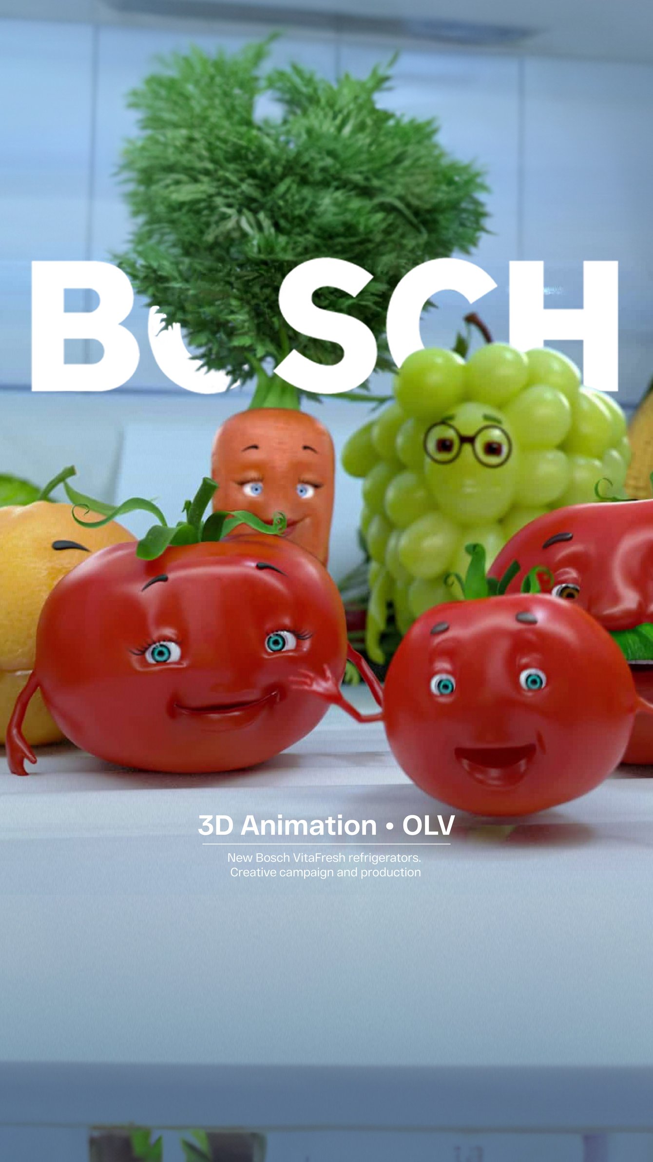 Bosch VitaFresh. Креативная концепция и продакшн роликов для продвижения новой линейки холодильников