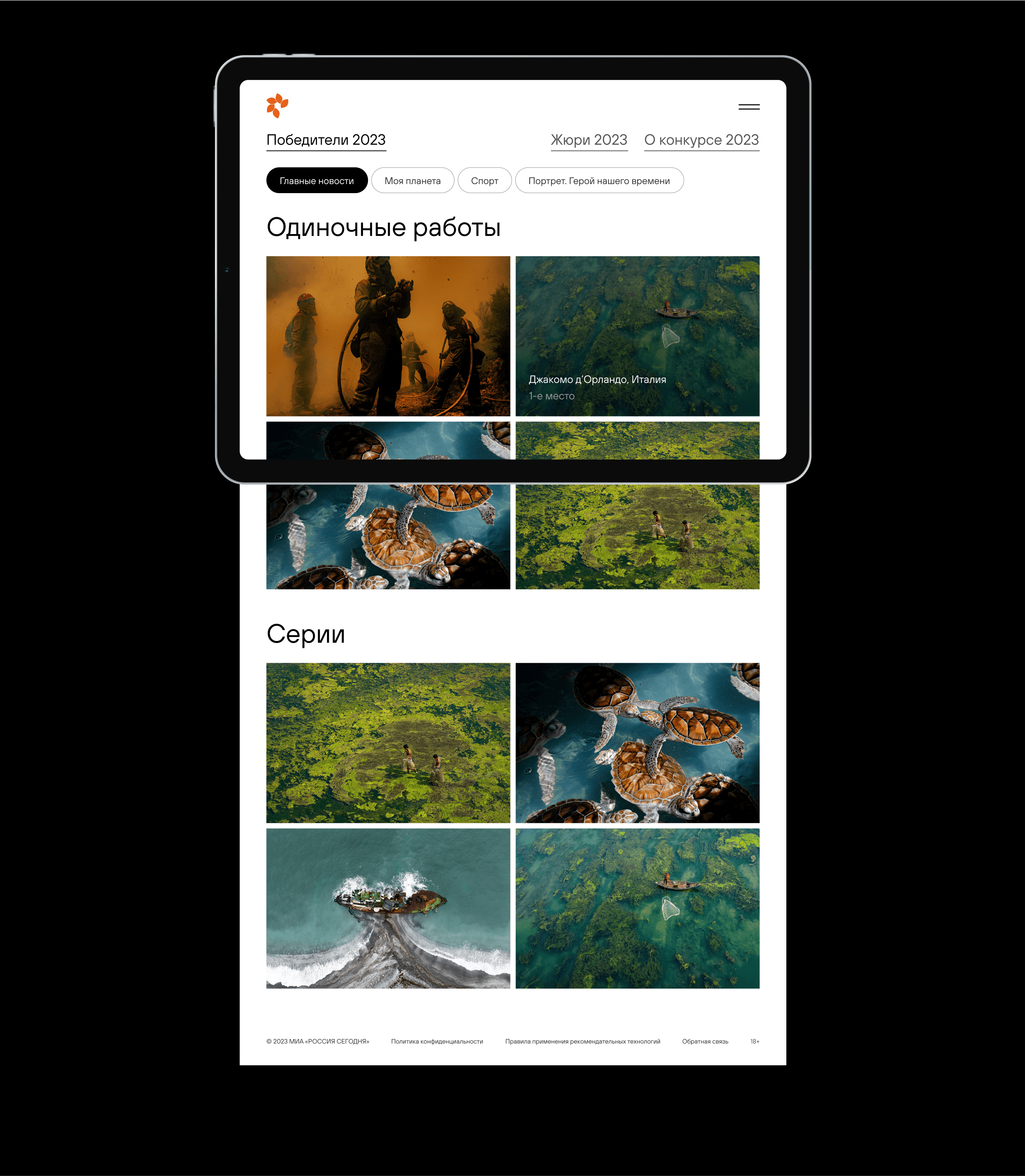 Сайт конкурса фотожурналистики позволяет участникам заявить о себе, зарегистрироваться и подать свои работы для участия и рассмотрения жюри. Затем сайт публикует работы победителей и шорт-листы для широкой публики, акцентируя внимание на самих фотоработах.