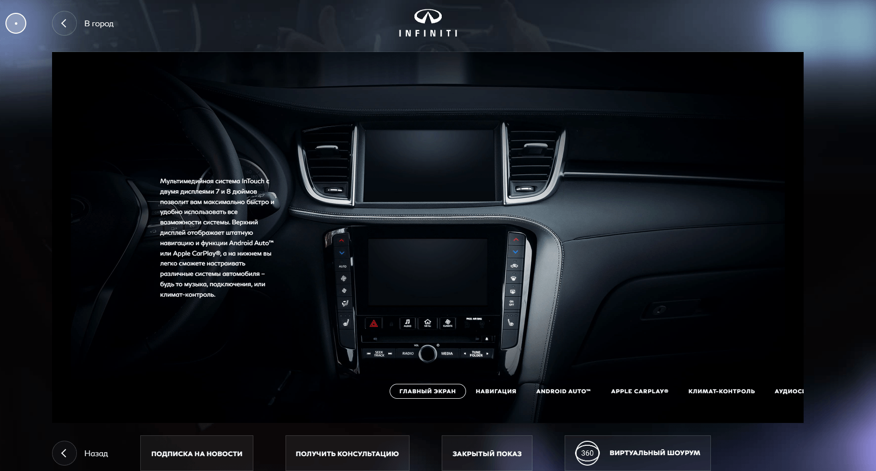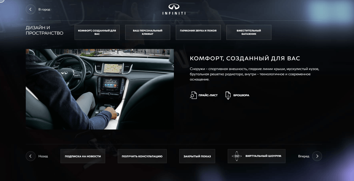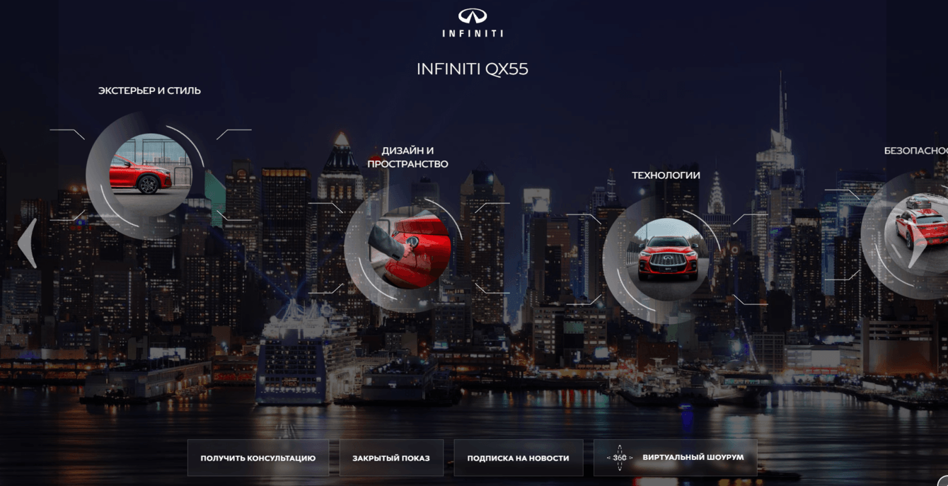 Презентация основных USP (особенностей автомобиля) реализована через пины на карте города, где кроме имиджей и текста были размещены и видео.