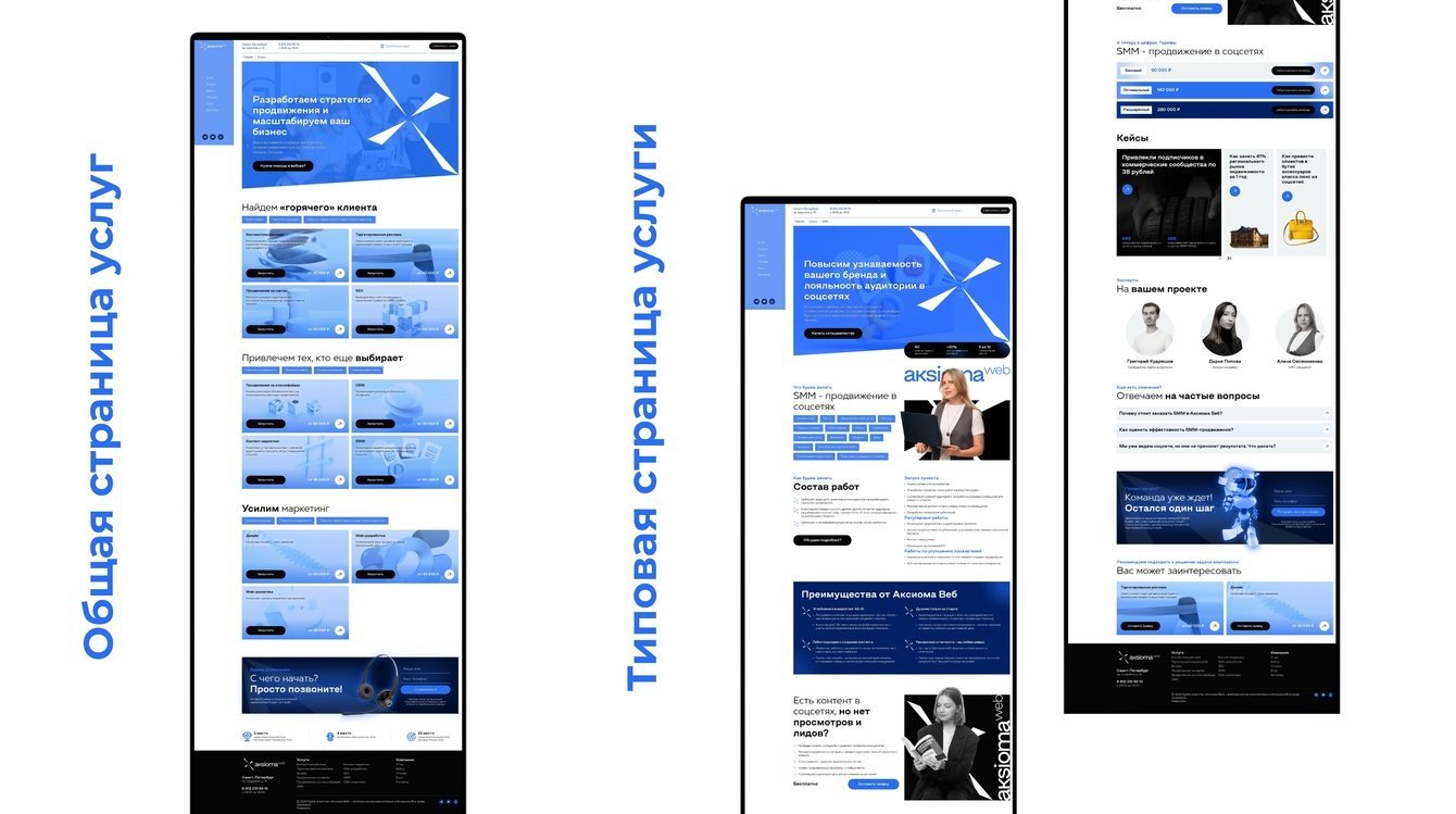 Внутри страницы каждой услуги мы разместили уникальную информацию об инструментах, составе работ, преимуществах реализации совместно с нашим агентством, лидогенерирующее предложение, тарифы с подробными условиями и ценами, превью команды, FAQ, форму обратной связи. Также перелинковали подходящие кейсы и схожие услуги, которые можно заказать для усиления комплекса.