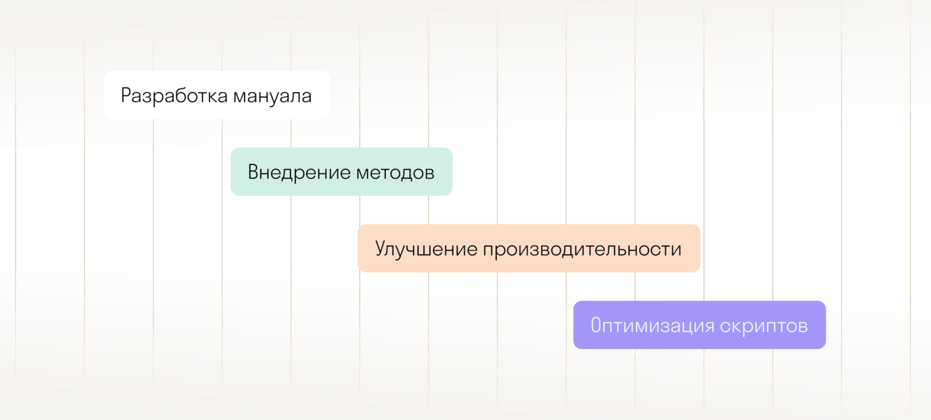 Перед нами стояла сложная задача — завершить проект в течение трёх месяцев. Для реализации мы внедрили параллельное выполнение нескольких процессов: