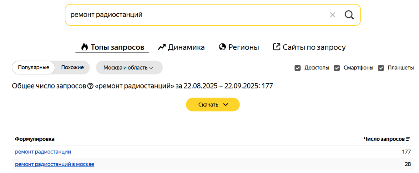 Условные ВЧ запросы имеют совсем небольшой спрос
