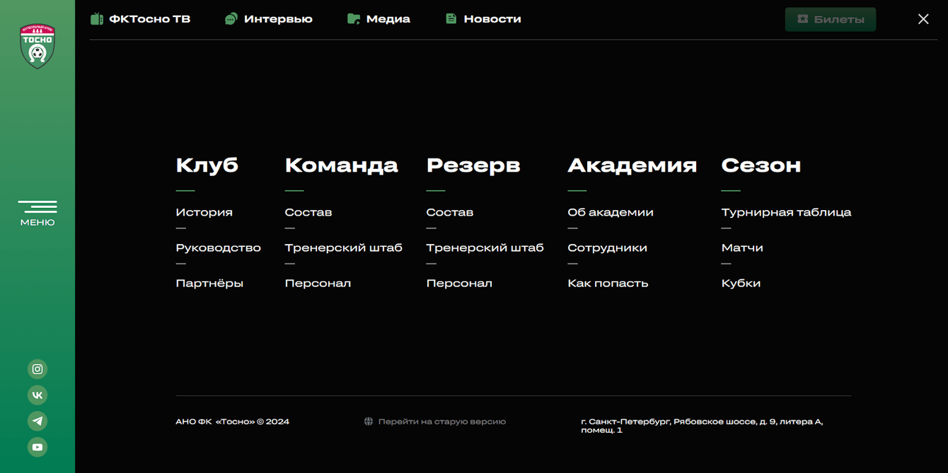 Наш клиент — российский футбольный клуб «Тосно». В сезоне 2017/18 команда стала обладателем Кубка России, но вскоре была расформирована. С 2023 года футбольный клуб был возрожден. Появилась необходимость обеспечить обновленное присутствие в интернет-пространстве, оживить фанатское сообщество и вернуть узнаваемость футбольного клуба.