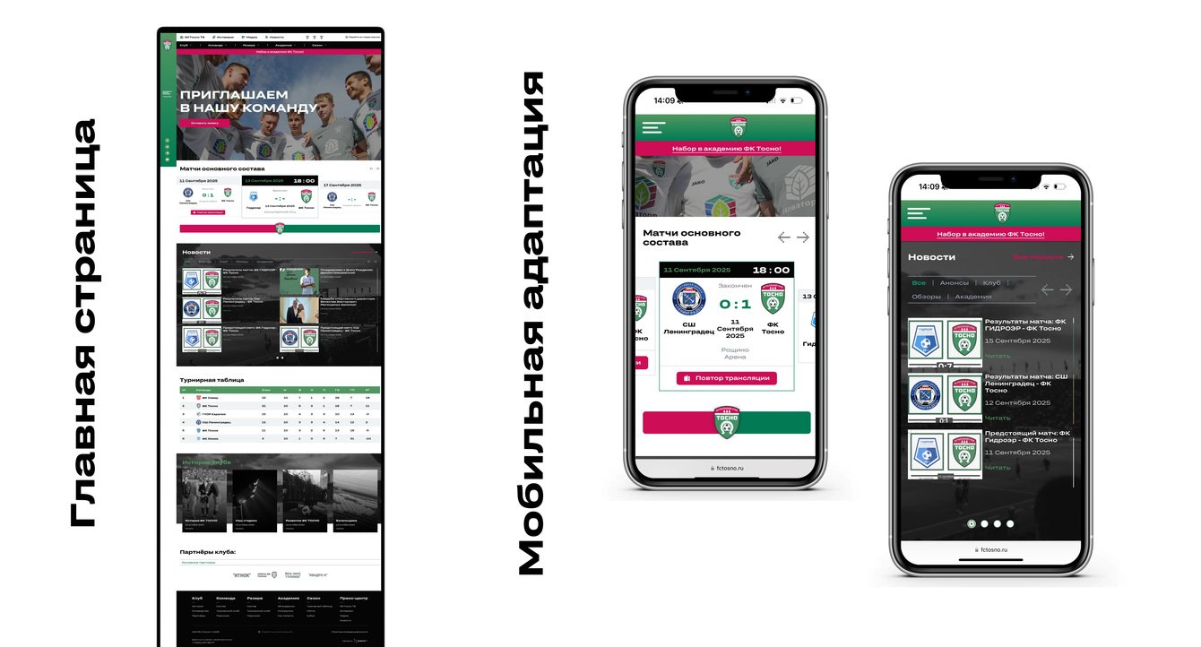Чтобы оценить сайт в контексте рынка, мы провели конкурентный анализ. Изучили решения ведущих клубов — от федеральных (например, «Спартак», «Зенит») до региональных («Тюмень» и др.). У многих из них на первом экране вынесены календарь матчей, турнирная таблица и ключевые новости, активно используются разделы «История клуба» и «Академия», развиты медиа-блоки и удобные формы обратной связи. На их фоне сайт «Тосно» выглядел устаревшим и перегруженным, что ещё раз подтвердило необходимость кардинальных изменений. Эти наблюдения легли в основу предложенных решений.