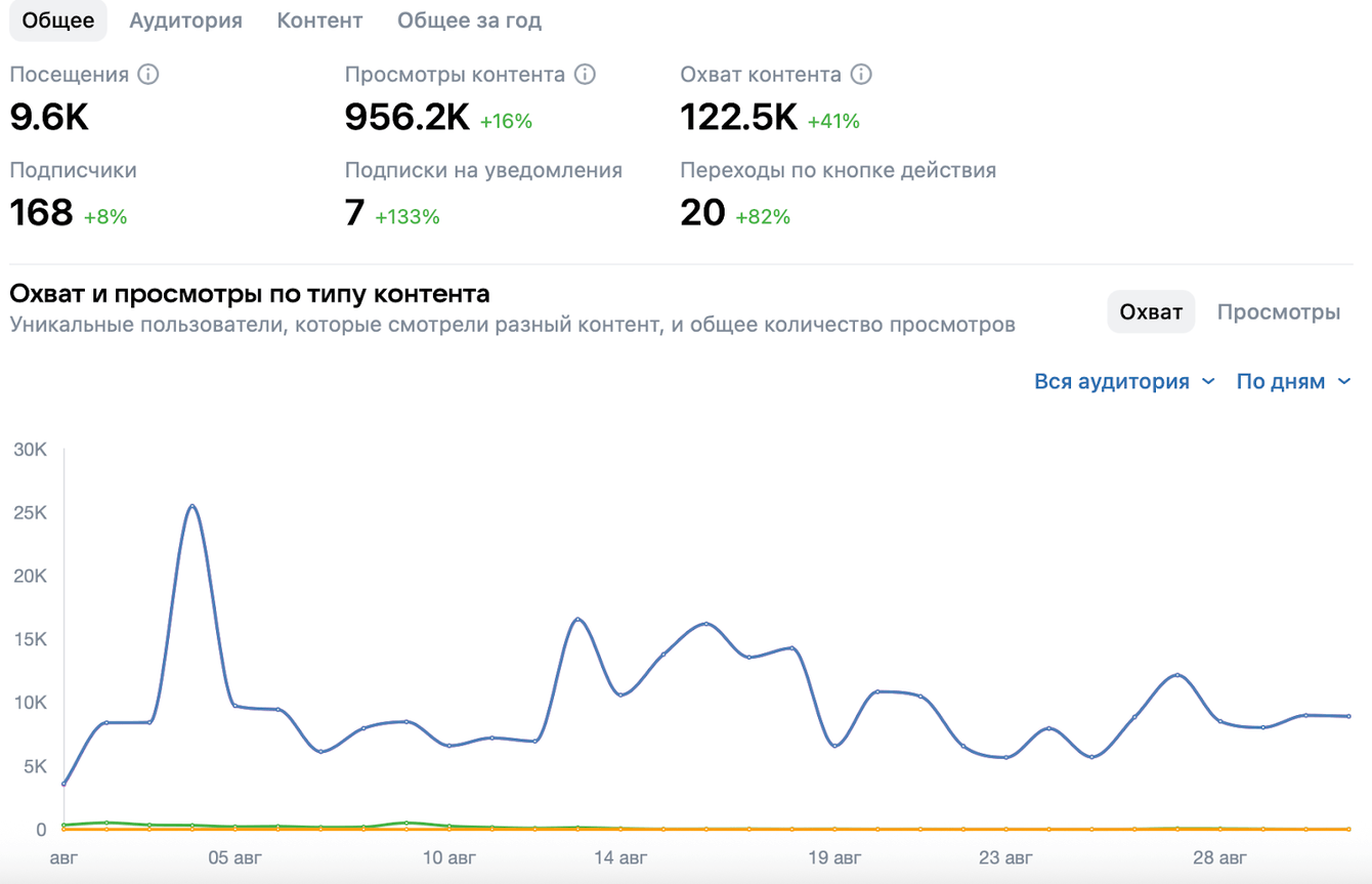 Одновременно значительно увеличился охват постов: по итогам августа он достиг 122 557.