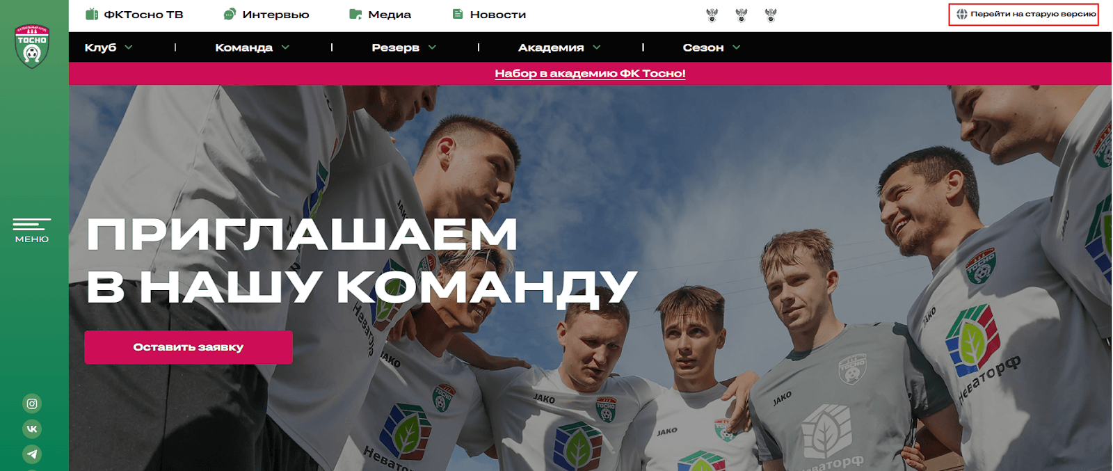 Наш клиент — российский футбольный клуб «Тосно». В сезоне 2017/18 команда стала обладателем Кубка России, но вскоре была расформирована. С 2023 года футбольный клуб был возрожден. Появилась необходимость обеспечить обновленное присутствие в интернет-пространстве, оживить фанатское сообщество и вернуть узнаваемость футбольного клуба.