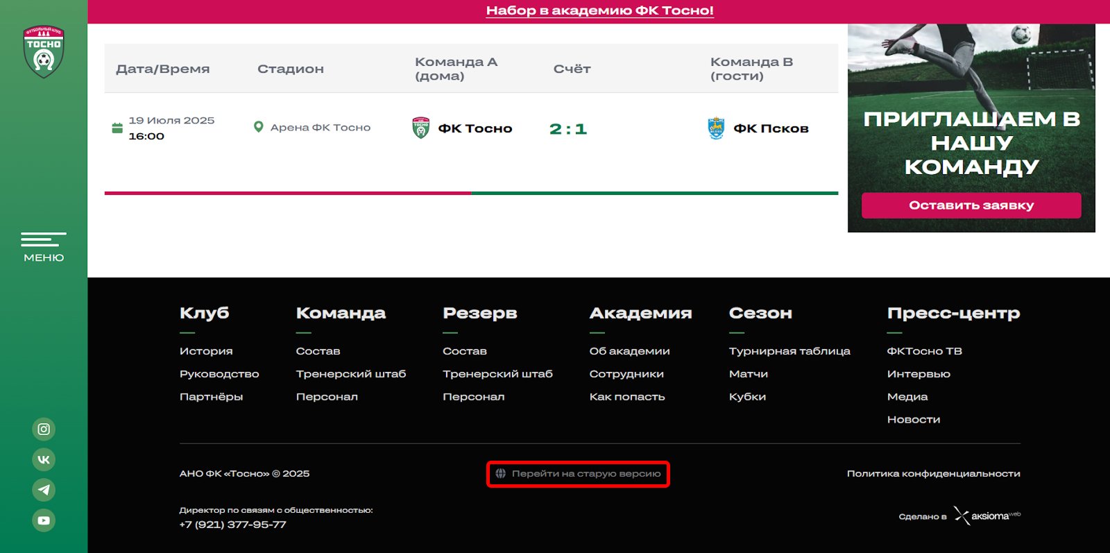 На старом сайте клиента контентная работа сводилась к публикации результатов турниров, новостей клуба и онлайн-трансляций матчей. Такой формат обеспечивал базовое информирование аудитории, но не позволял активно вовлекать болельщиков и создавать живой, интерактивный контент.
