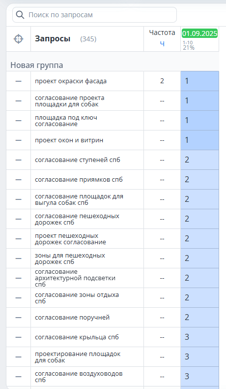 В результате комплексной работе уже на второй месяц продвижения удалось достичь Топ 3 по по ключевым запросам. Продолжаем работы по поднятию всего семантического ядра в Топ 3.