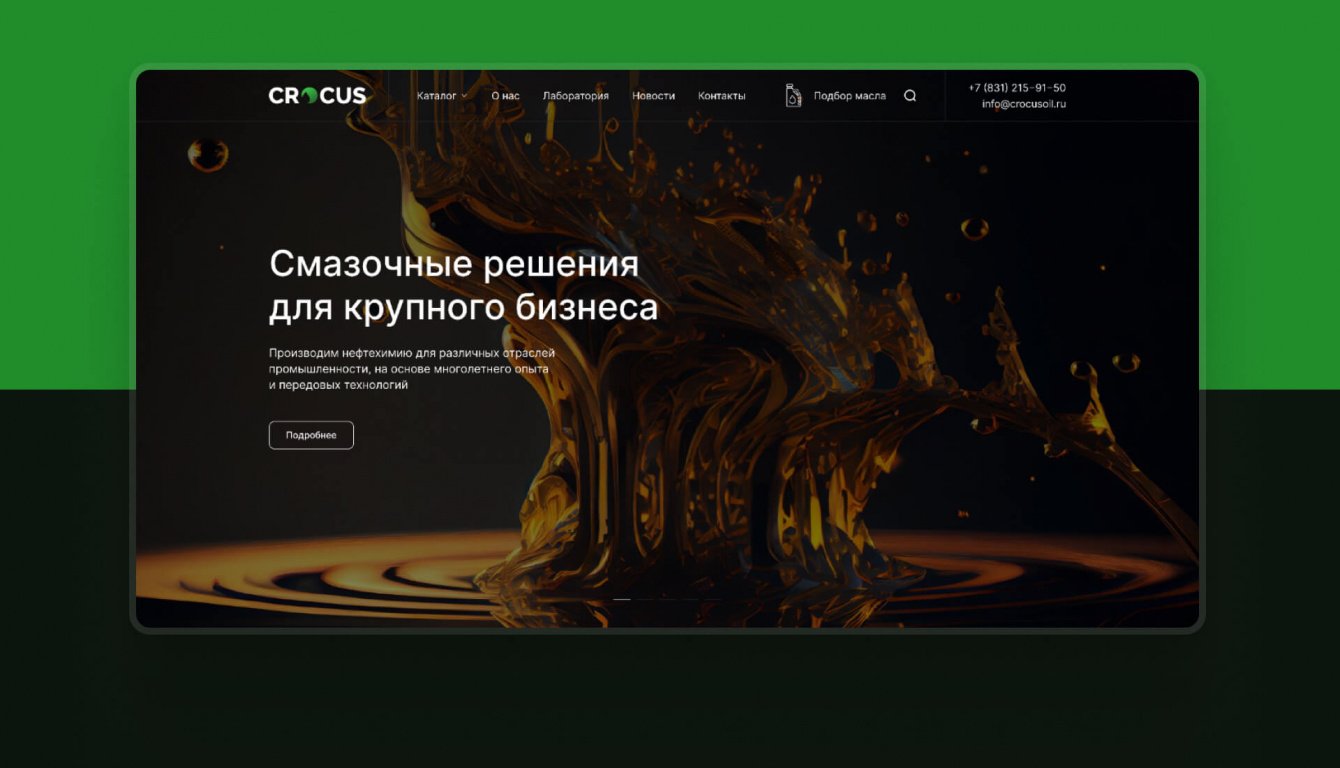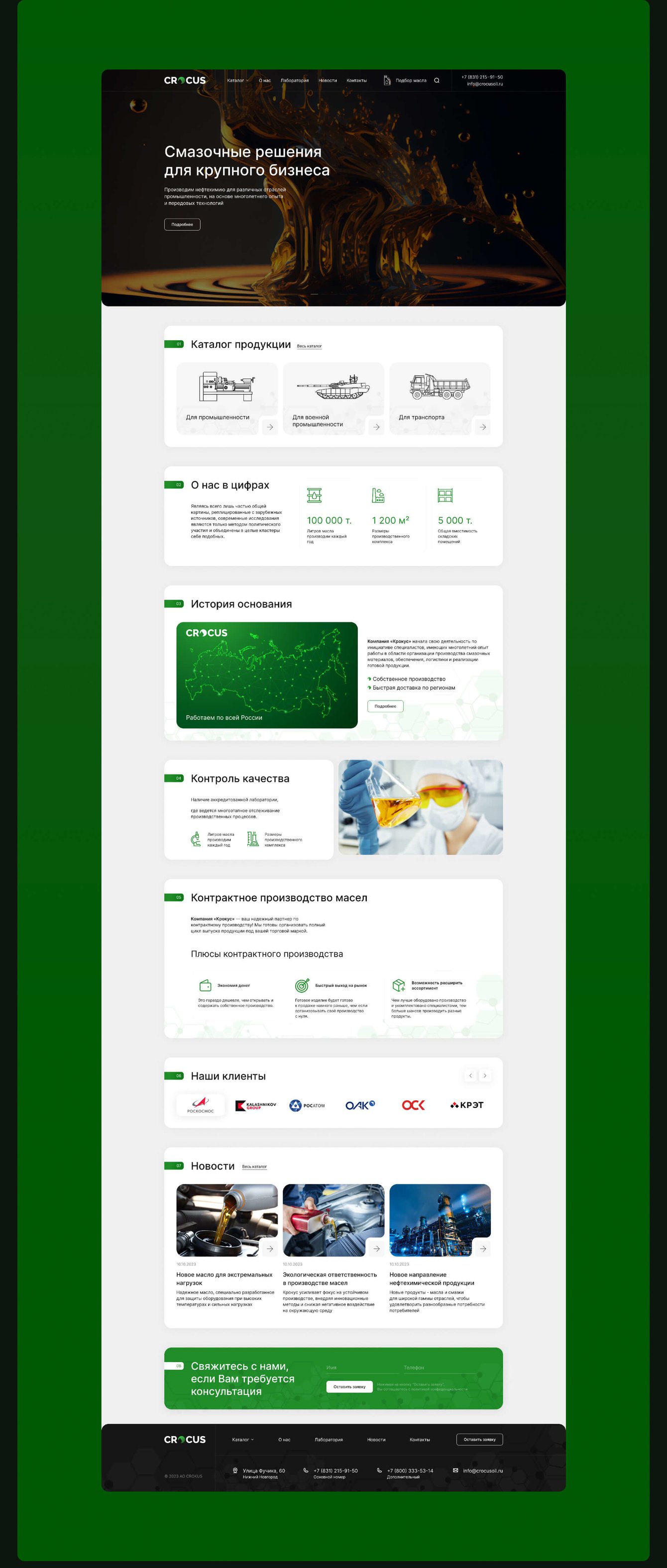 Компания «Крокус» занимается производством и доставкой смазочных материалов и нефтехимии по всей России. Специализируются на поставках для предприятий машиностроения, авиастроения, оборонно-промышленного комплекса.